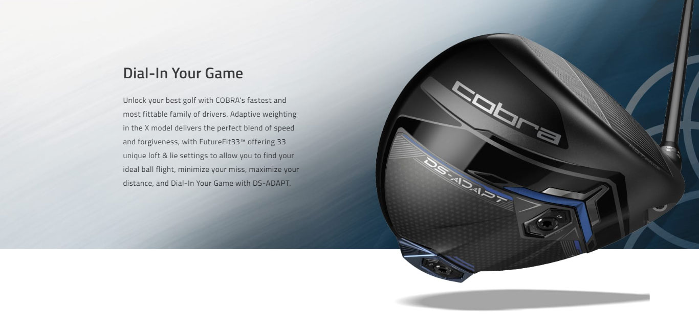 Unlock your best golf with COBRA's fastest and most fittable family of drivers. Adaptive weighting in the X model delivers the perfect blend of speed and forgiveness, with FutureFit33™ offering 33 unique loft & lie settings to allow you to find your ideal ball flight, minimize your miss, maximize your distance, and Dial-In Your Game with DS-ADAPT. FutureFit33™ features 33 unique loft & lie settings to optimize your ball flight, minimize your miss, and maximize your distance. Loft & lie can be adjusted by +/- 2 degrees in any direction, allowing for the ultimate fine-tuned fitting customization, while the innovative SMARTPAD® design enables the face angle to remain square regardless of the setting. The DS-ADAPT X Driver features a streamlined perimeter face area, higher crown peak and less raised aft, with and new lowered heel area. This driver was shaped to create speed in a more traditional clubhead shape. A larger, forged face insert with H.O.T. Face technology delivers improved face flex for more robust distance and ball speeds on and around the center of the face. A back weight is accompanied by a second forward weight, allowing for additional launch & spin-tuning control.