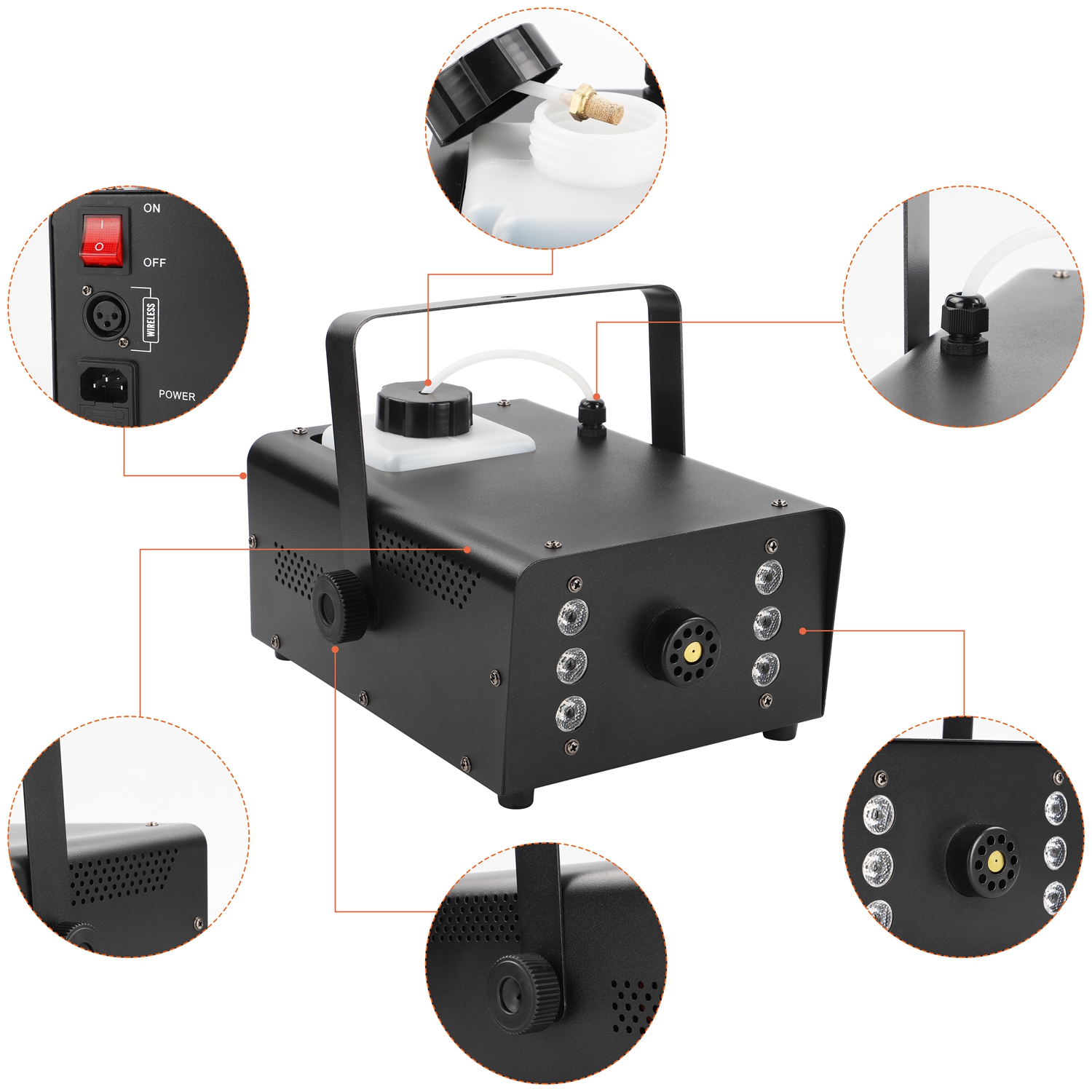 U`King 1500W High Power Fog Smoke Machine with 6LED RGB Light