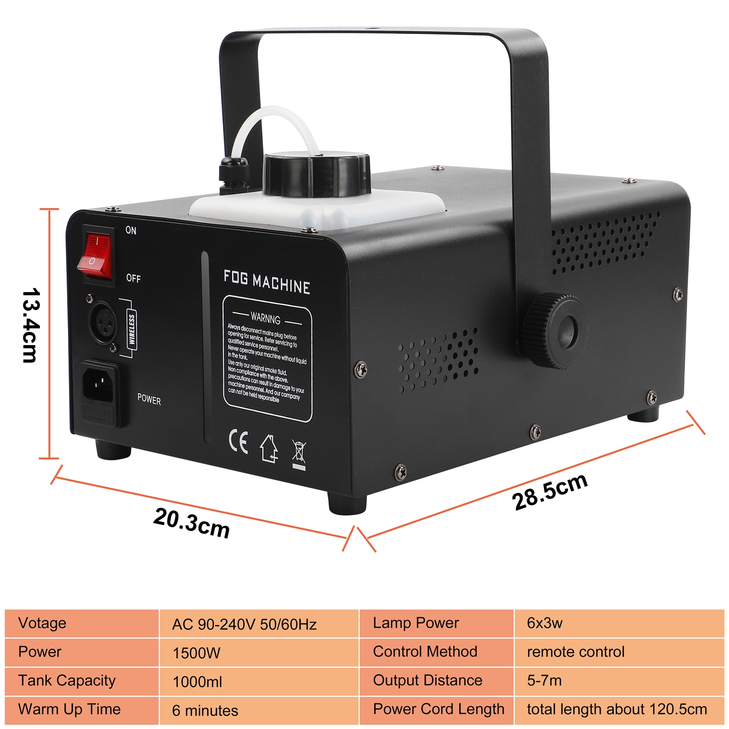 The 1500W fog machine is a powerful new fog machine. It can be controlled manually, or with a wireless remote controller, making it ideal for small and medium events. Just add the atomized liquid , turn on the power, press the remote control, and instantly release the smoke. The released smoke is safe, non-toxic, and leaves no trace. It's also color-changing, which can enhance the atmosphere. This portable fog machine can add charm to any event.