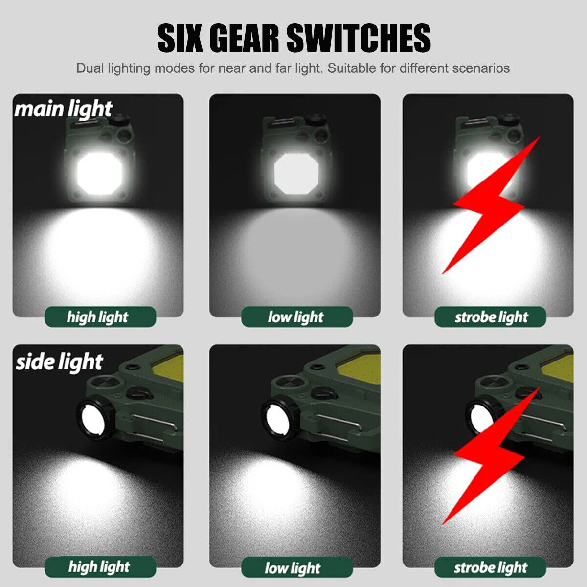 Lighting mode: main light: strong light - weak light - flashing