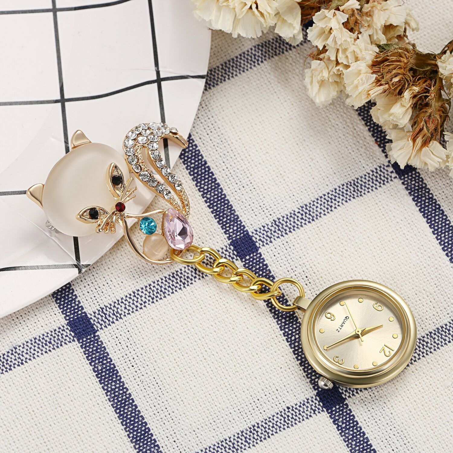 Eye-Catcher Design - Rhinestone cartoon cat and flower is very cute and fashion, wearing this watch makes you look lovely. Durable metal chain design, super cute, light weight, lets you shine your colleague. Wearing it everyday, you will get a lot of compliments. Great Gift for Nurse's Day, Nurse's Week.