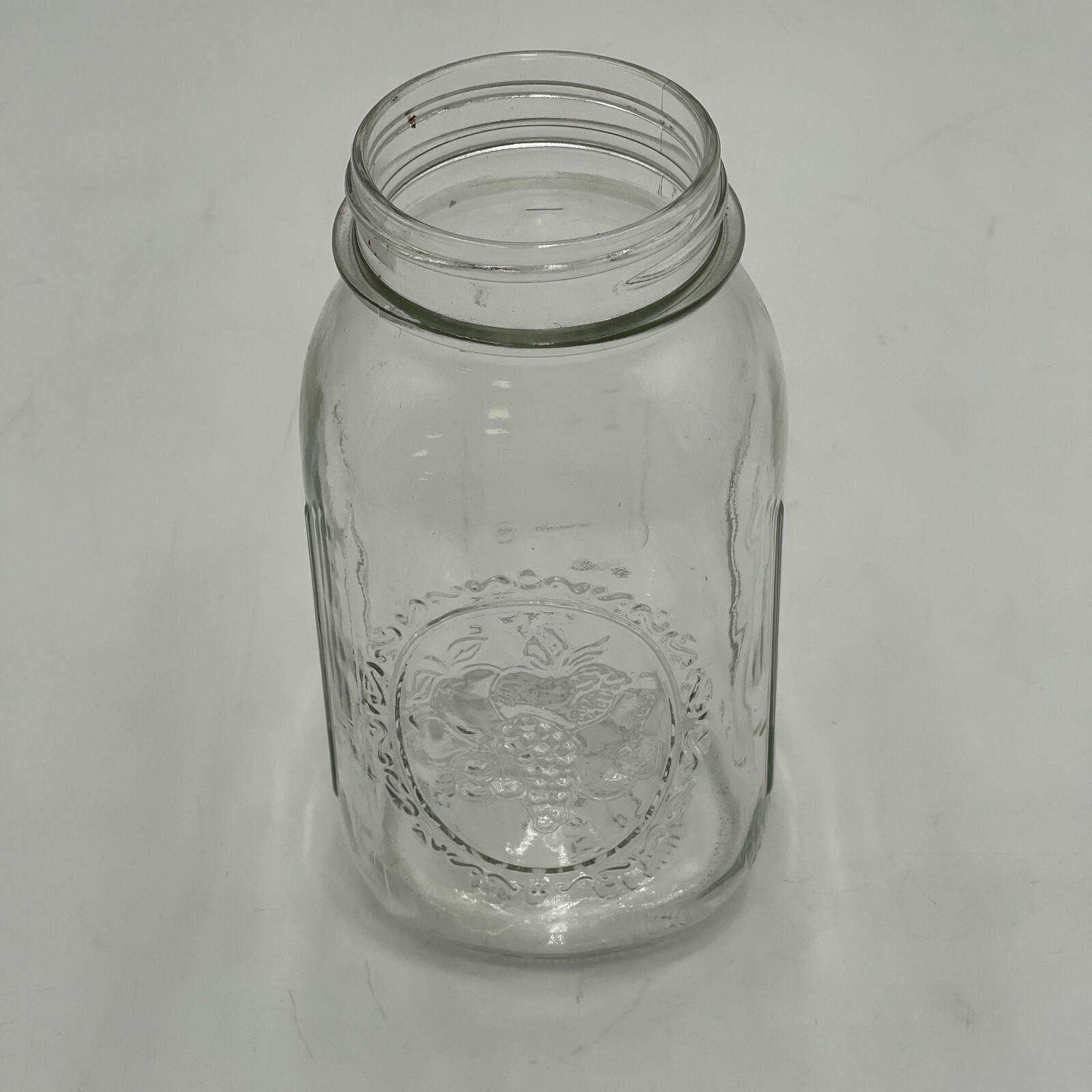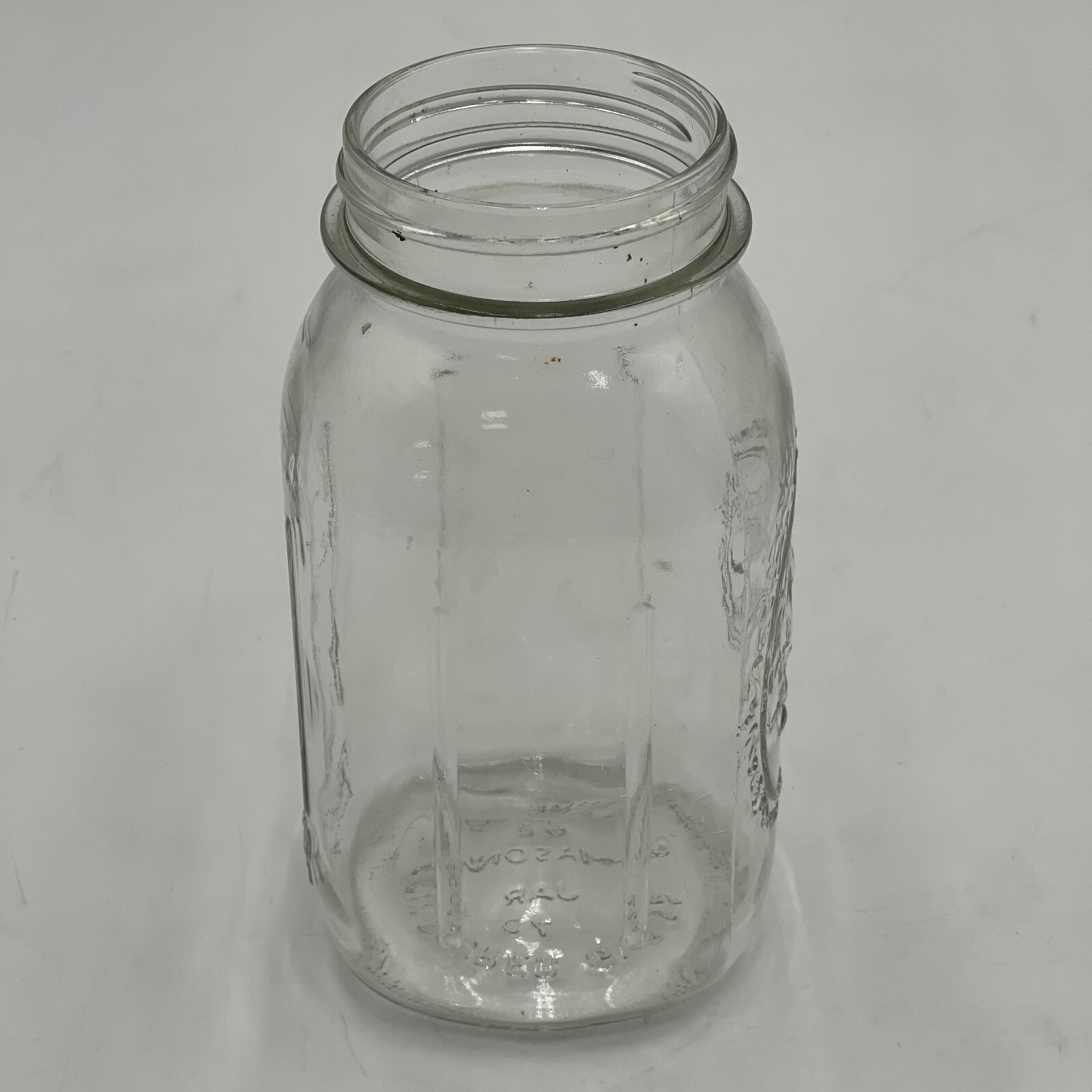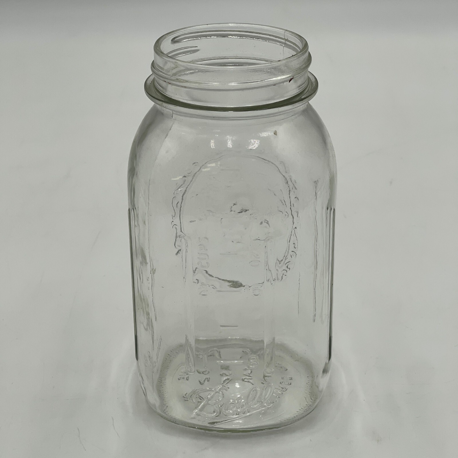 The product is a vintage genuine Ball Sculptured Glass Mason fruit jar in quart size.