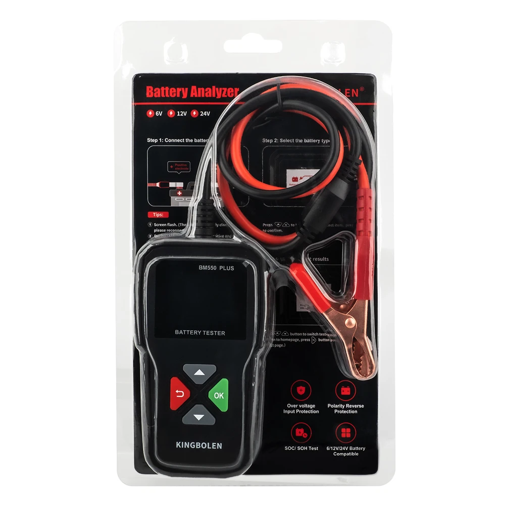 KINGBOLEN BM550 PLUS Car Battery Tester AUTO 6V 12V 24V Battery System Detect Color Screen OBD EOBD CAN Battery Analyzer Tool