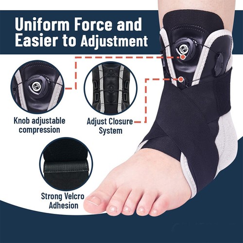 Maximum Ankle Support- The ankle brace  is equipped with removable aluminum bar devices on both sides to help stabilize your ankle without hurting your skin. The X-Straps compression ankle brace helps stabilize the subtalar and talocrural joints, resists inversion or eversion forces, and provides three-way support for your lower ankle.
