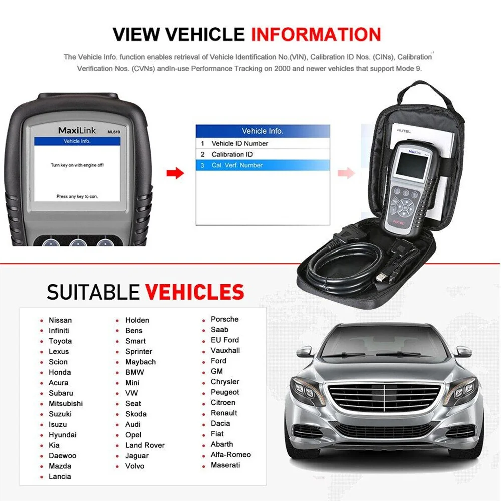 Autel ML619 Auto Scanner Code Reader Diagnostic Tool Vehicle Coverage: