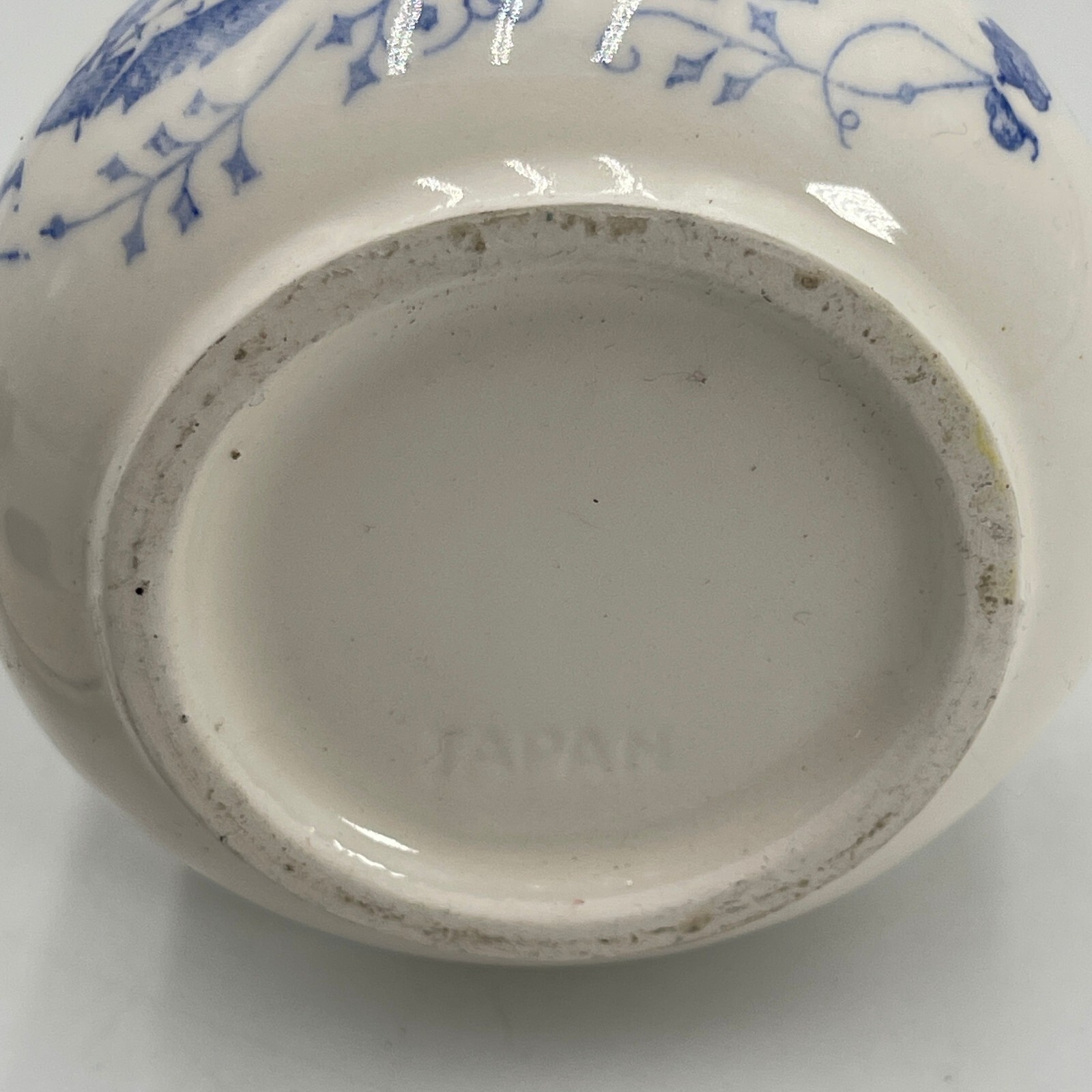 Vintage 1950's Delft Blue Teapot with a round shape and floral pattern.