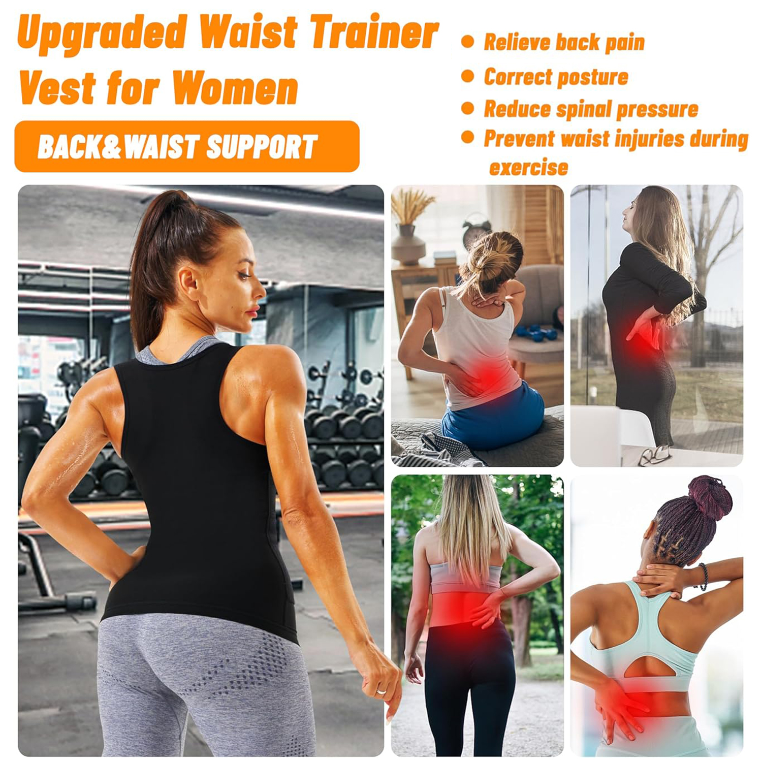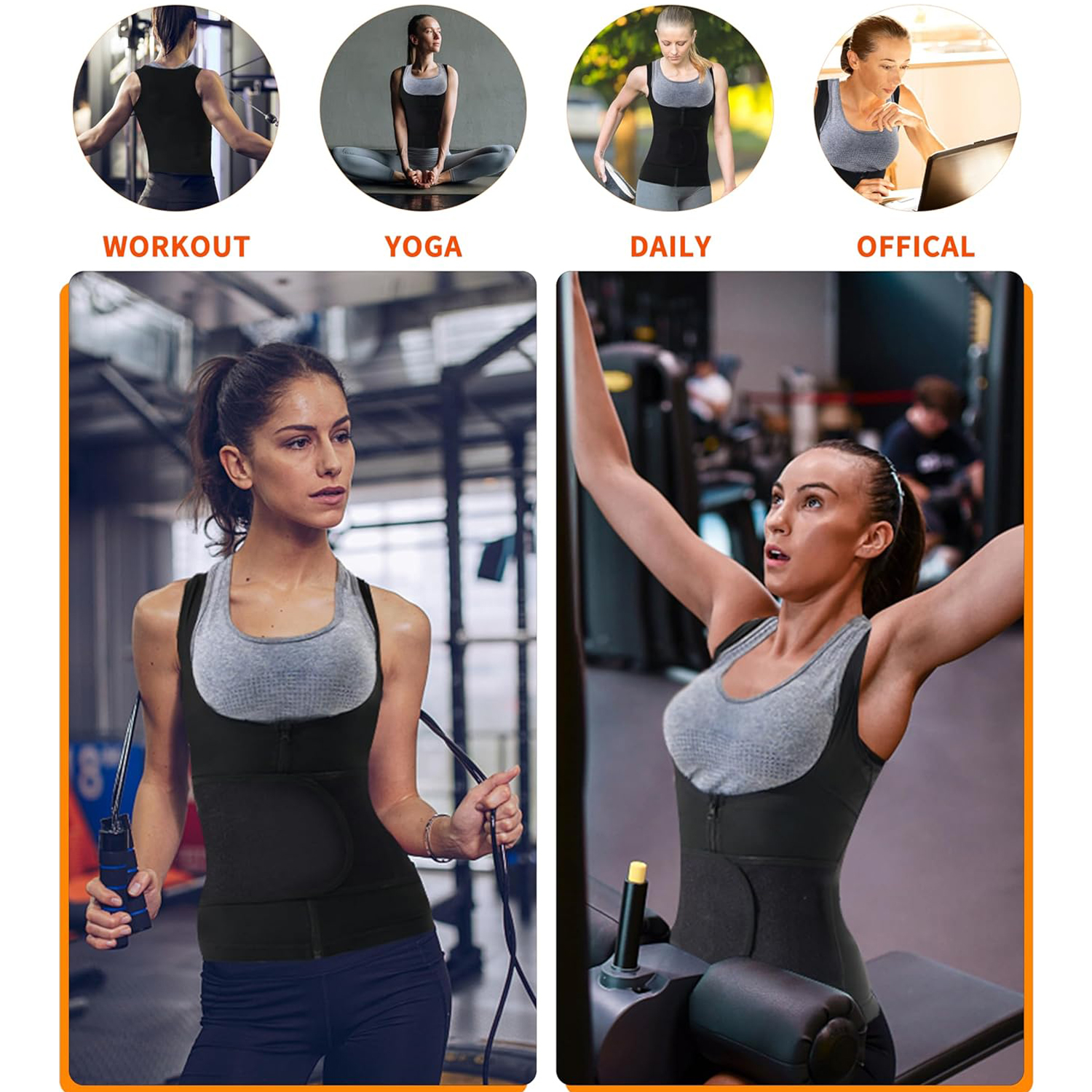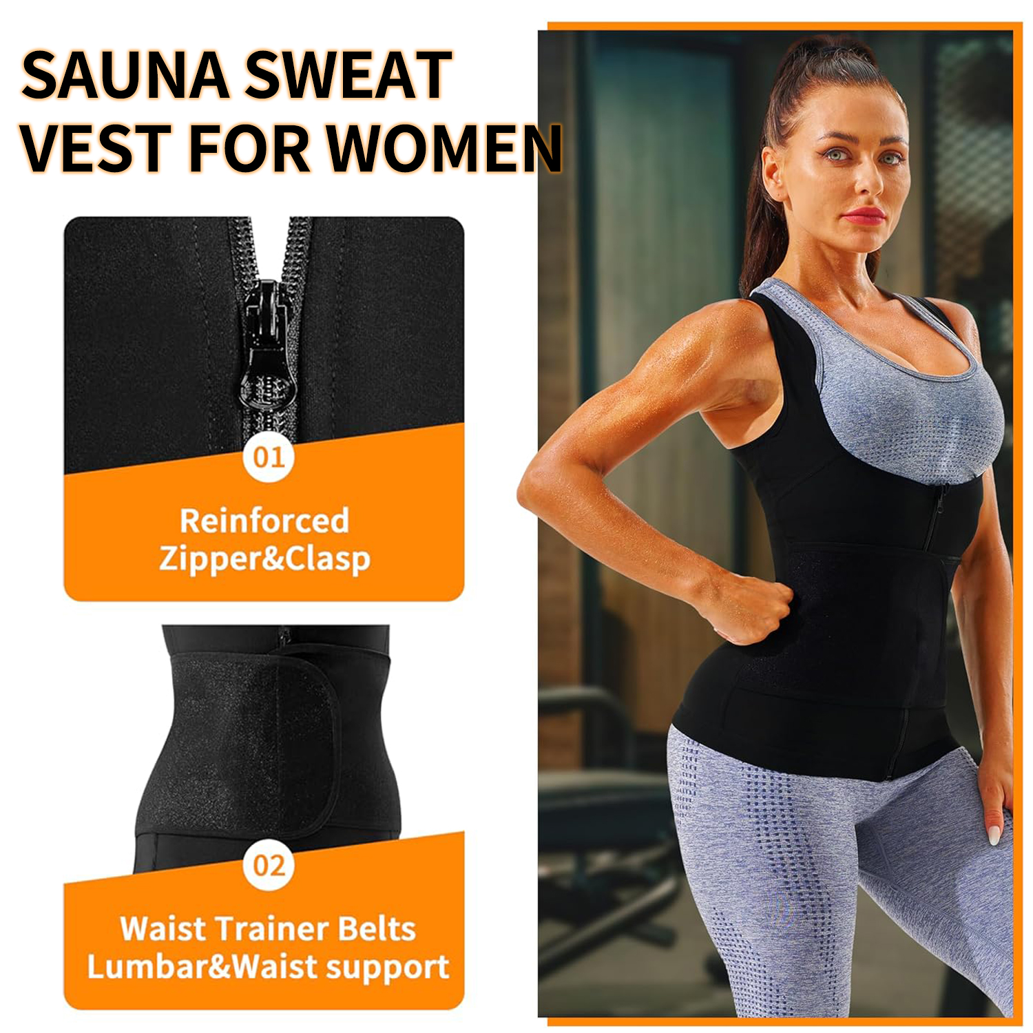 PREMIUM FABRIC,LUMBAR SUPPORT:This sauna vest for women is made of upgraded heat-trapping fabric,no unpleasant odor,comfortable and breathable.Just wear the sauna suit for 10 minutes of exercise,you will achieve a 30 minute workout effect,create an experience similar to a hot sauna.The upgraded waist trainer vest has a double velcro design,which can provide waist support dunring exercise and wffectively prevent waist injuries.