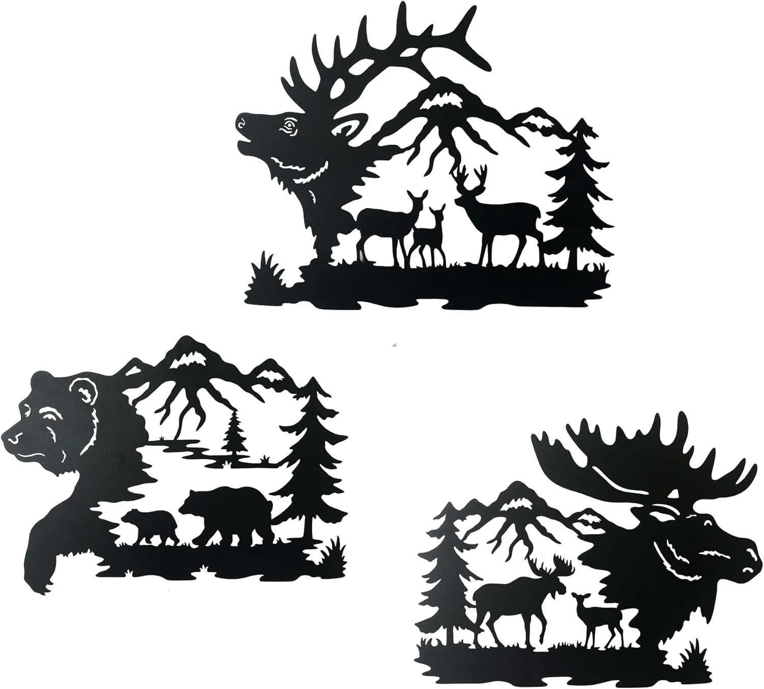 NewVees Large 14 inch Black Deer Bear Moose Rustic Cabin Wall Art Decor,