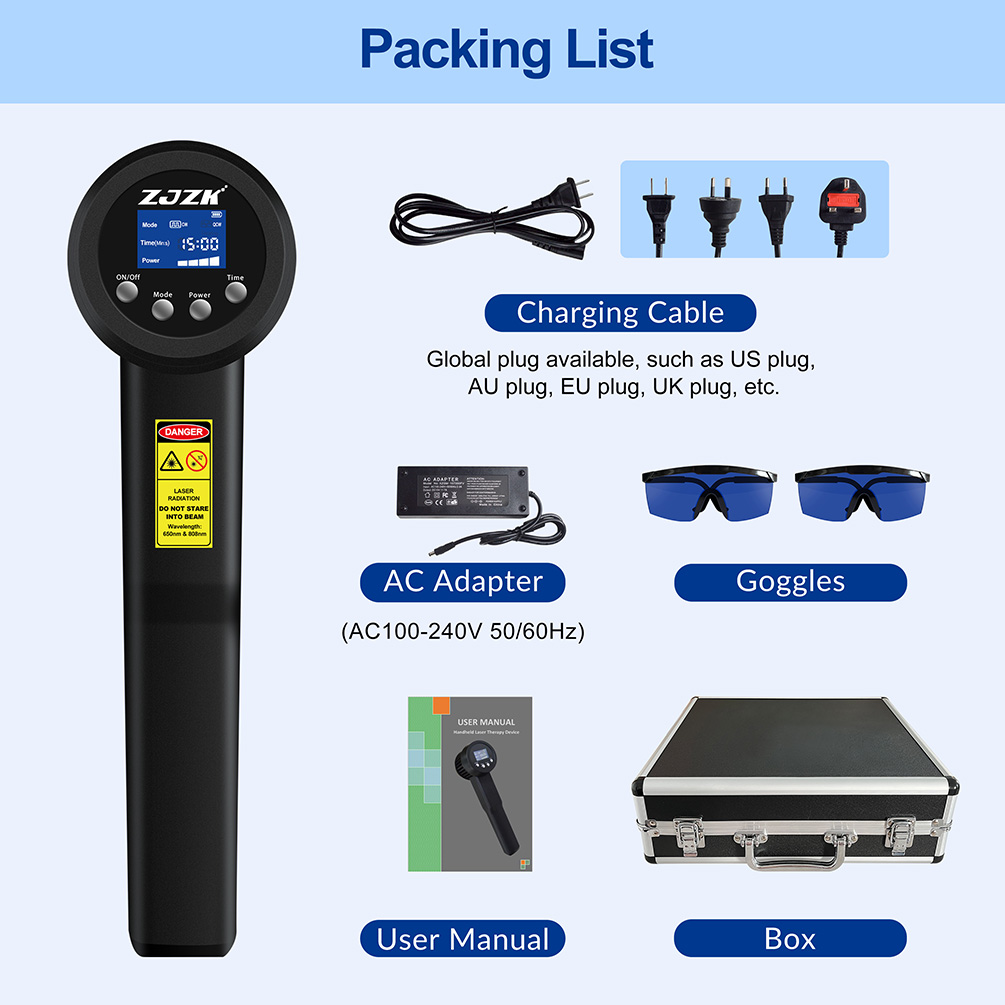 【Packaging and 100% Service】This infrared therapy equipment includes 1x laser therapy device 1xAC adapter, 1x plug, 1xUser manual, 2xGoggles, 1xPacking box. The mls cold laser device is very durable, and we provide one year warranty. The pain relieve laser devices are really great gifts for your family. If you have any questions about our near infrared laser machine, please feel free to contact us, we will answer your questions within 24 hours.