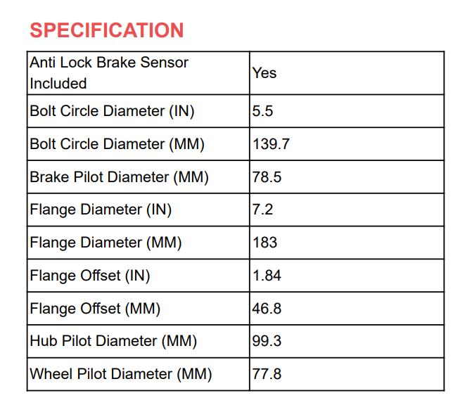 Front Complete Wheel Hub and Bearing Assemblies