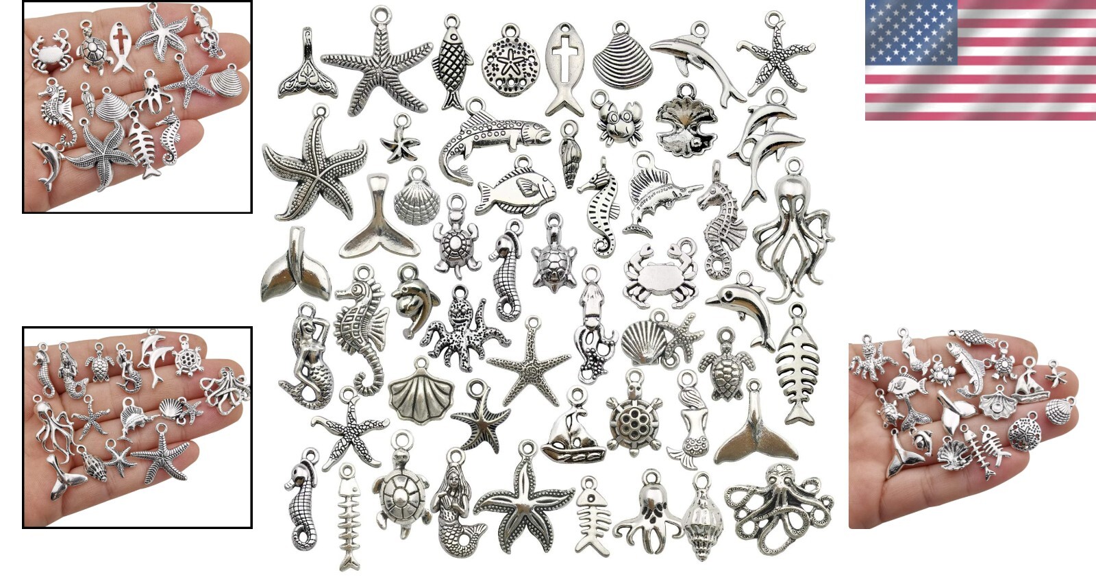 Transform your DIY jewelry creations with our marine-themed charm collection! This exquisite selection features 100 pieces of mixed charms, allowing you to explore your creativity in style.