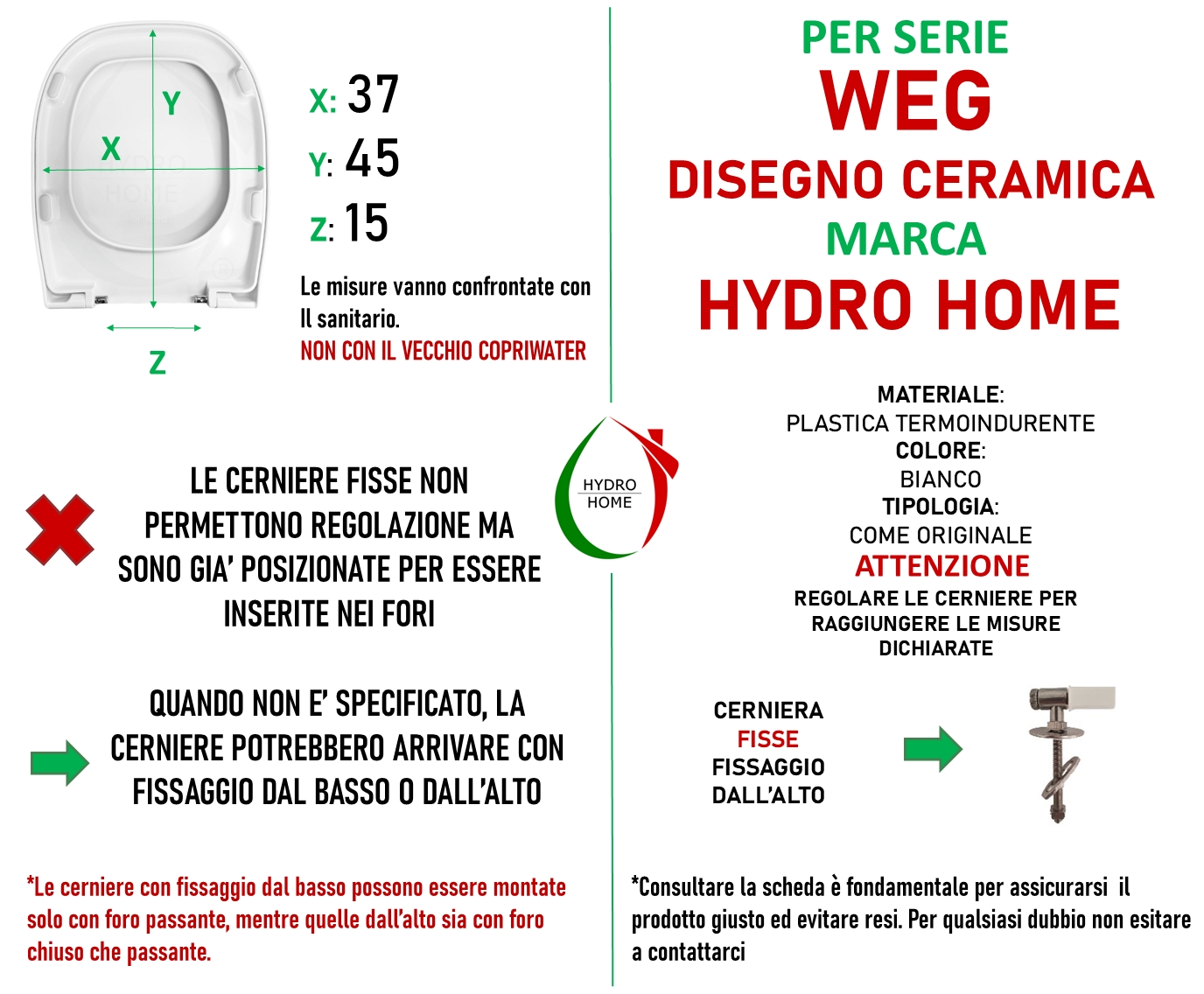 COSA VUOL DIRE "COMPATIBILE"?: Solitamente i copriwater compatibili si adattano a più di una serie di sanitari anche grazie alle cerniere regolabili che permettono di gestire lunghezza ed interasse. Questi prodotti si installano perfettamente sulla serie riportata in descrizione. Il connubio tra "Compatibile" e "Top Quality" è un ottima soluzione, non da meno del prodotto originale, ed è quella più scelta dai nostri clienti.