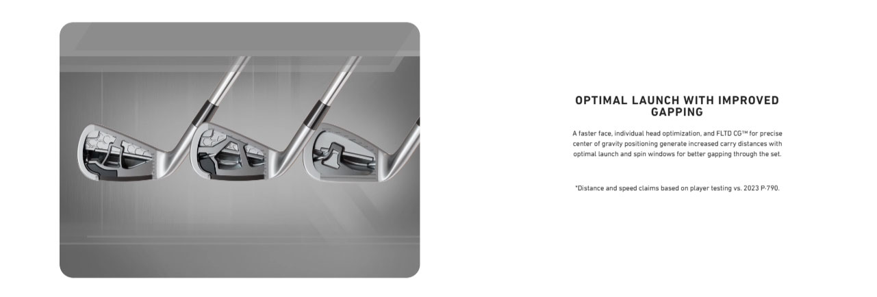 The next chapter of the P·Series story lies with the all-new P·790™ irons, the irons that created a category all their own. Giving golfers the consistent distance they desire, premium forged feel, and a larger sweet spot with improved gapping, P·790 irons will have you attacking more pins. The 2025 P·790 debuts an all-new ultra-high strength, high speed 4340M forged face material that’s 20% stronger than previous generations. The increased strength unlocks more distance while simultaneously increasing the sweet spot size by up to 24%.* When creating the 2025 P·790 irons, our engineers individually optimized each head and incorporated SpeedFoam™ Air to make them the best feeling P·790 irons to date. A faster face, individual head optimization, and FLTD CG™ for precise center of gravity positioning generate increased carry distances with optimal launch and spin windows for better gapping through the set. The all-new P·790 irons have been refined with a thinner top line for a cleaner look in the playing position that inspires confidence at address. An increased sole radius and progressive leading edge ensure consistent turf interaction and improved impact location.