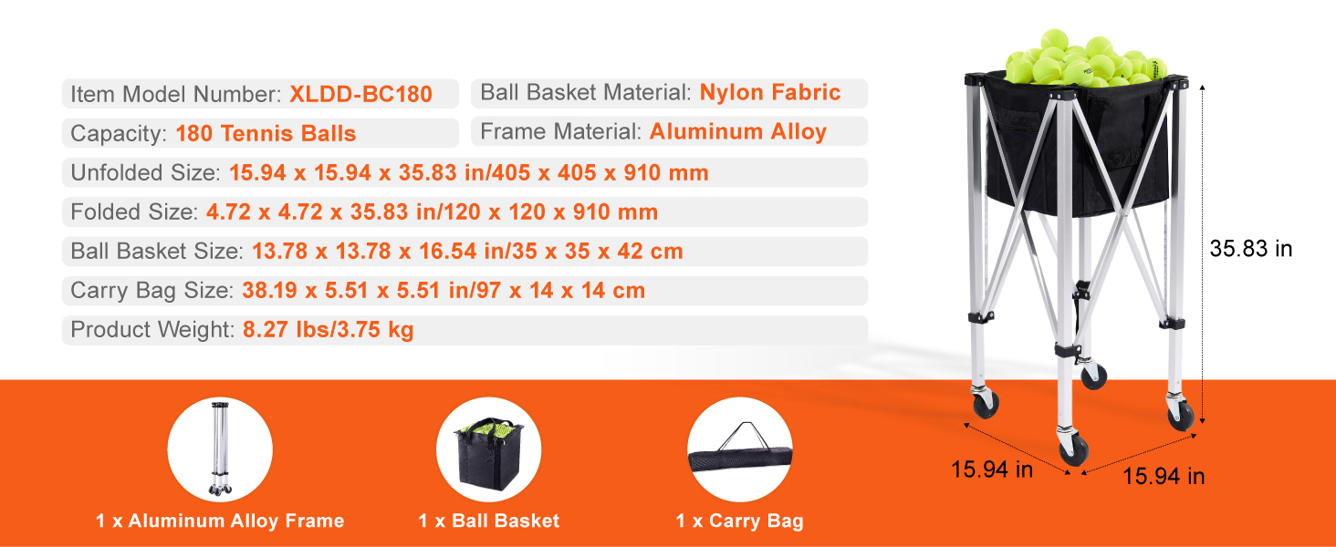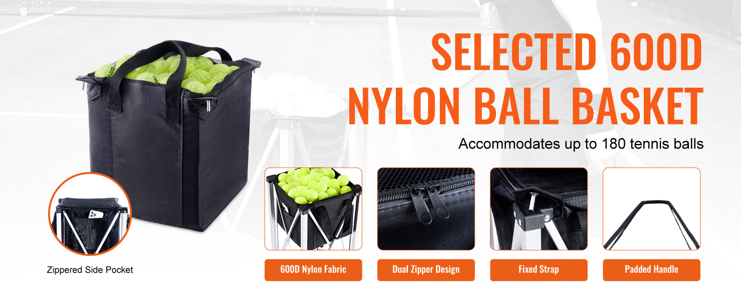Large Capacity Heavy-Duty Basket: Say goodbye to chasing balls around the court! Our durable nylon tennis ball basket holds up to 180 balls securely, with a zippered cover to keep them in place. No more spills, just focus on your game. The basket features a unique cross-bracing system, with the bottom insert providing strong support.