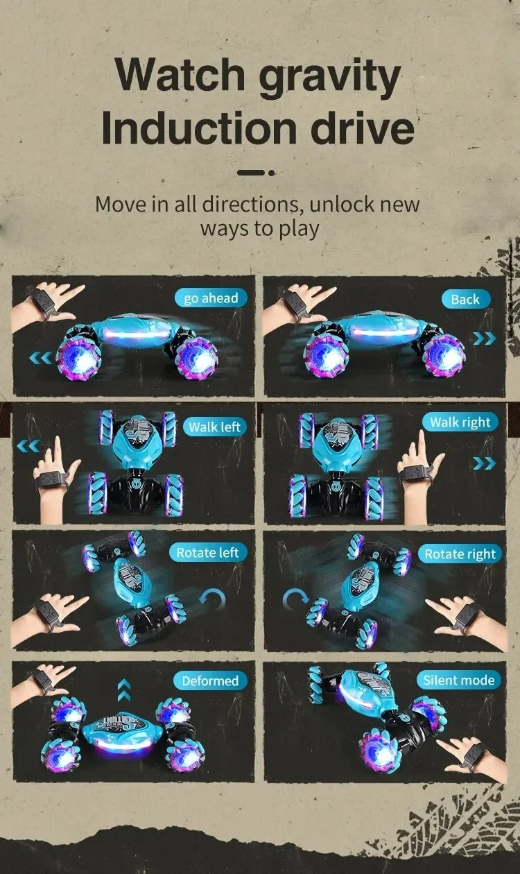 1. With 2 control ways: gravity sensor watch control and remote controller. Gesture Induction Deformation :The car can transform into a different shape with just a gesture, making it an exciting and unique toy for kids.
