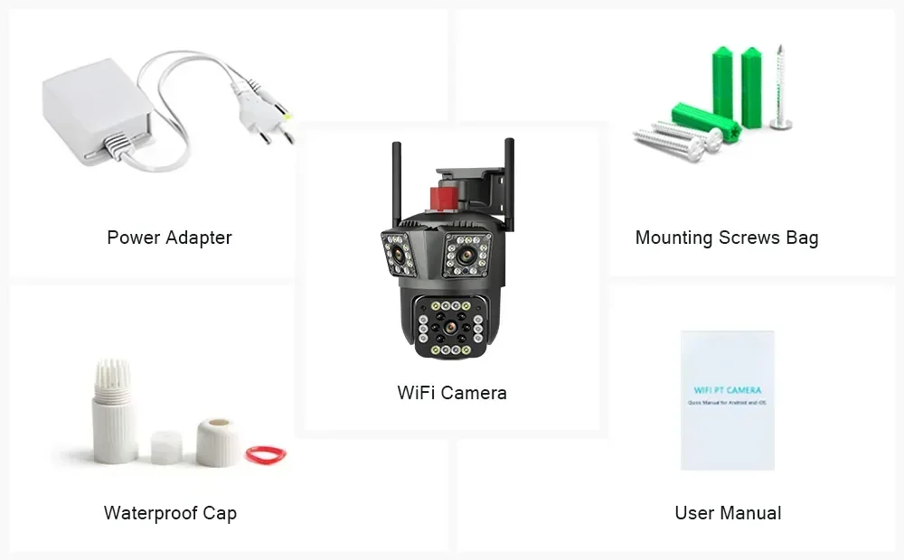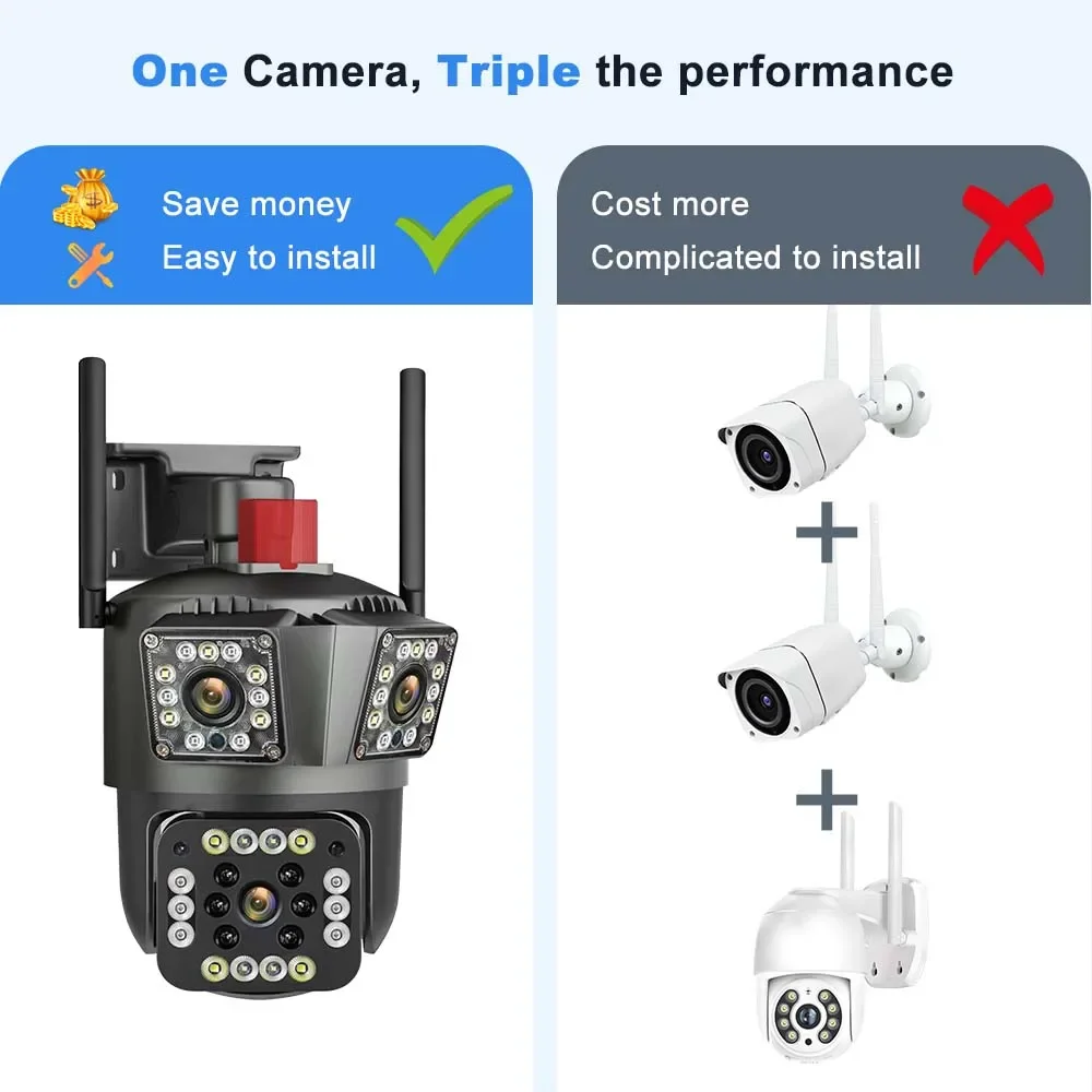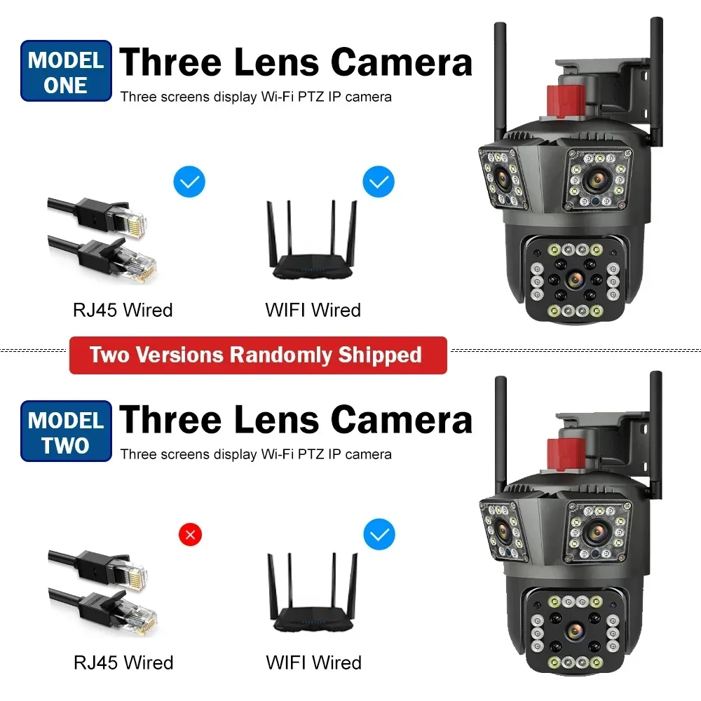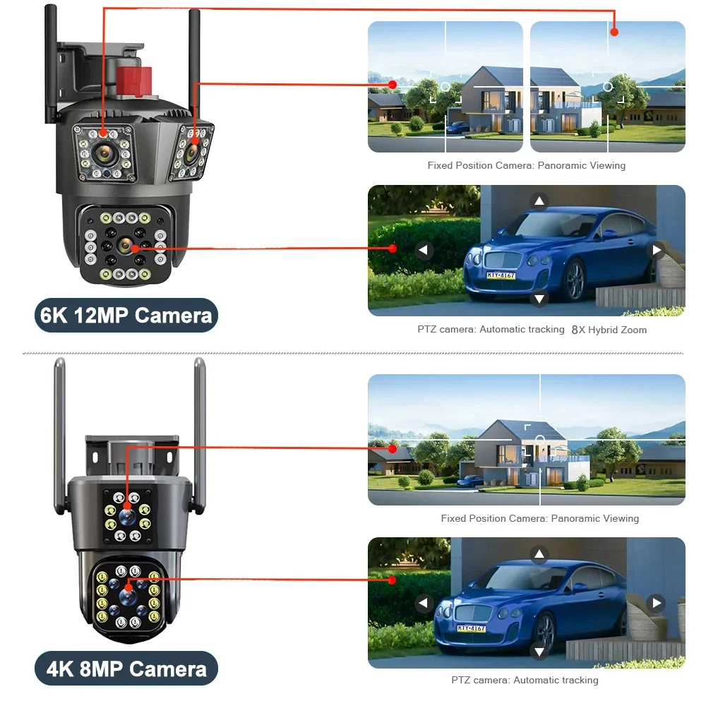 6K 12MP WiFi IP Camera Outdoor Three Lens Screen PTZ Zoom Cam Auto Tracking Security Protection Waterproof Video Surveillance