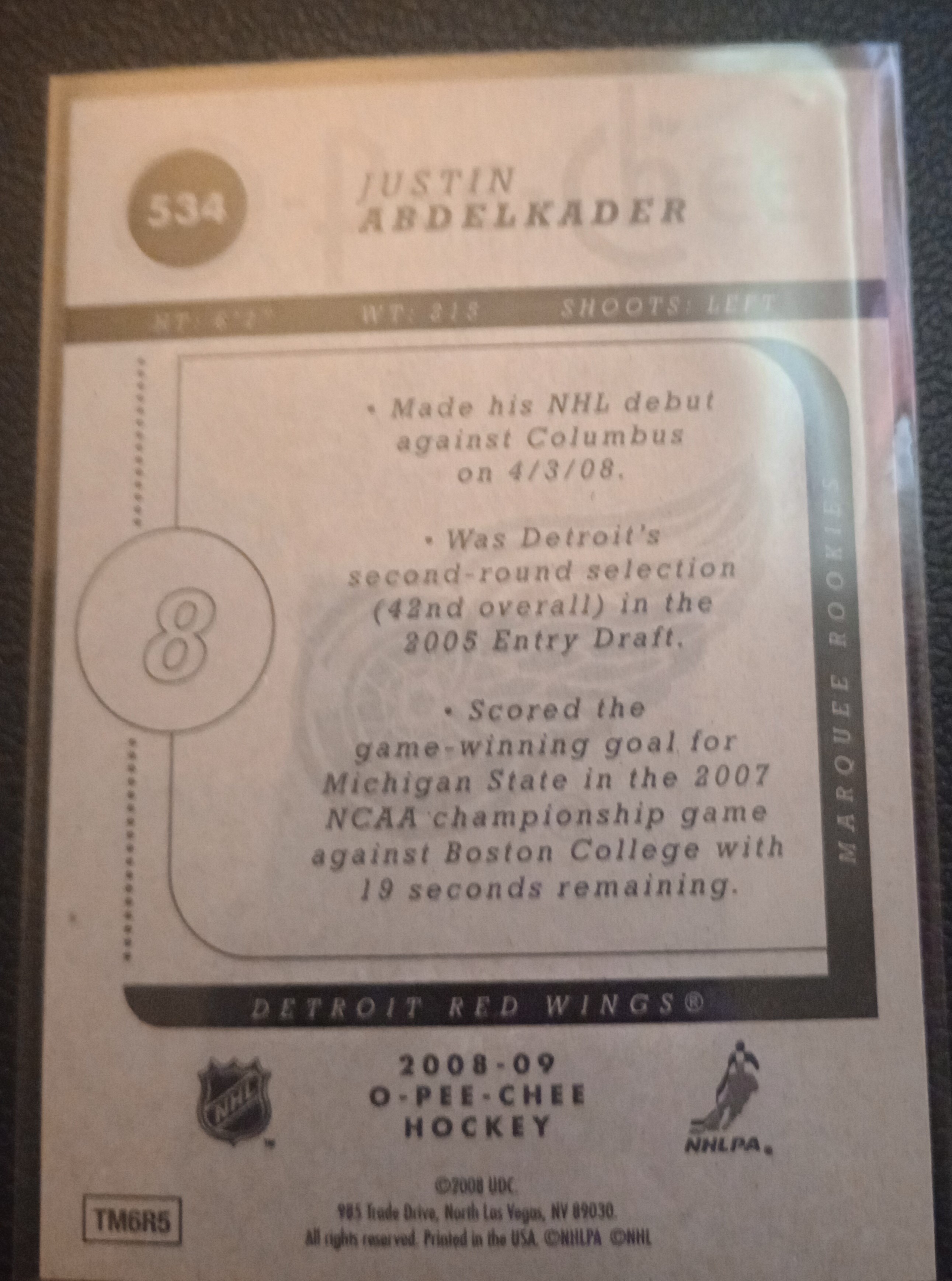 2008-09 O-Pee-Chee #534 Justin Abdelkader RC Rookie Red Wings