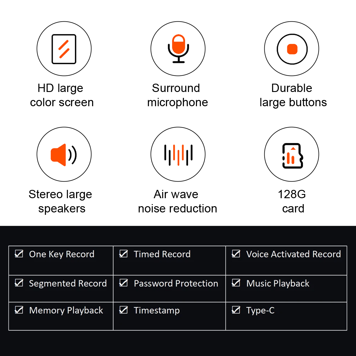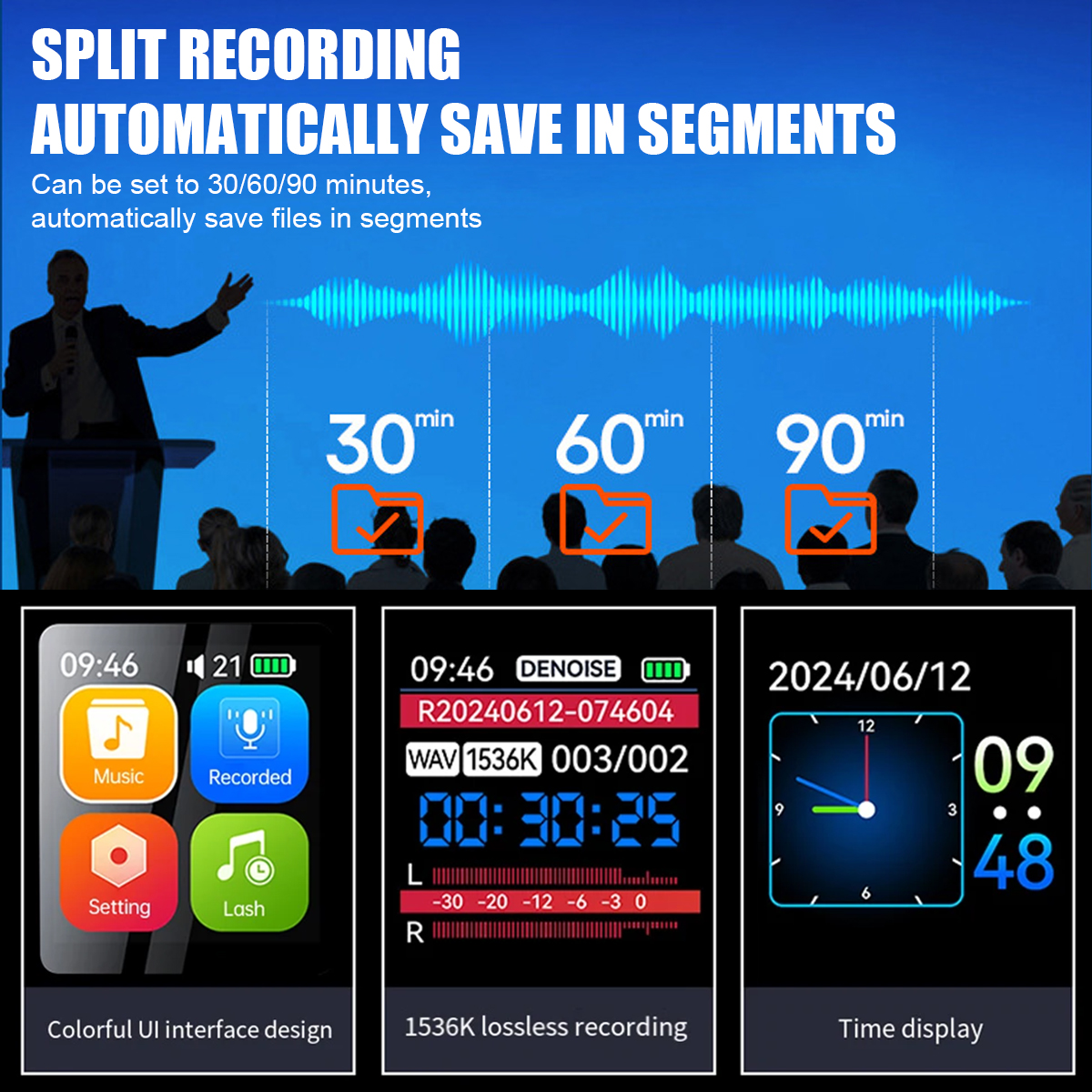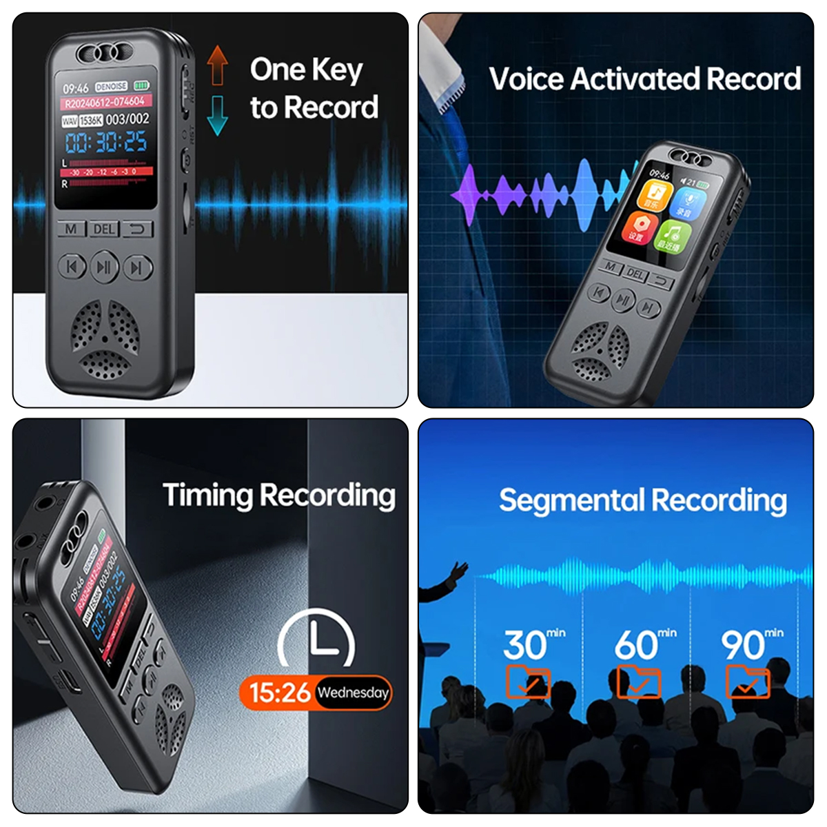 Intuitive and User-Friendly: Featuring a 1.44-inch large color screen, this digital voice recorder allows you to easily set the time and date and navigate through a clear and concise UI interface. With just one button, you can start recording instantly or take advantage of the voice-activated, timed, or segmented recording options for added convenience.