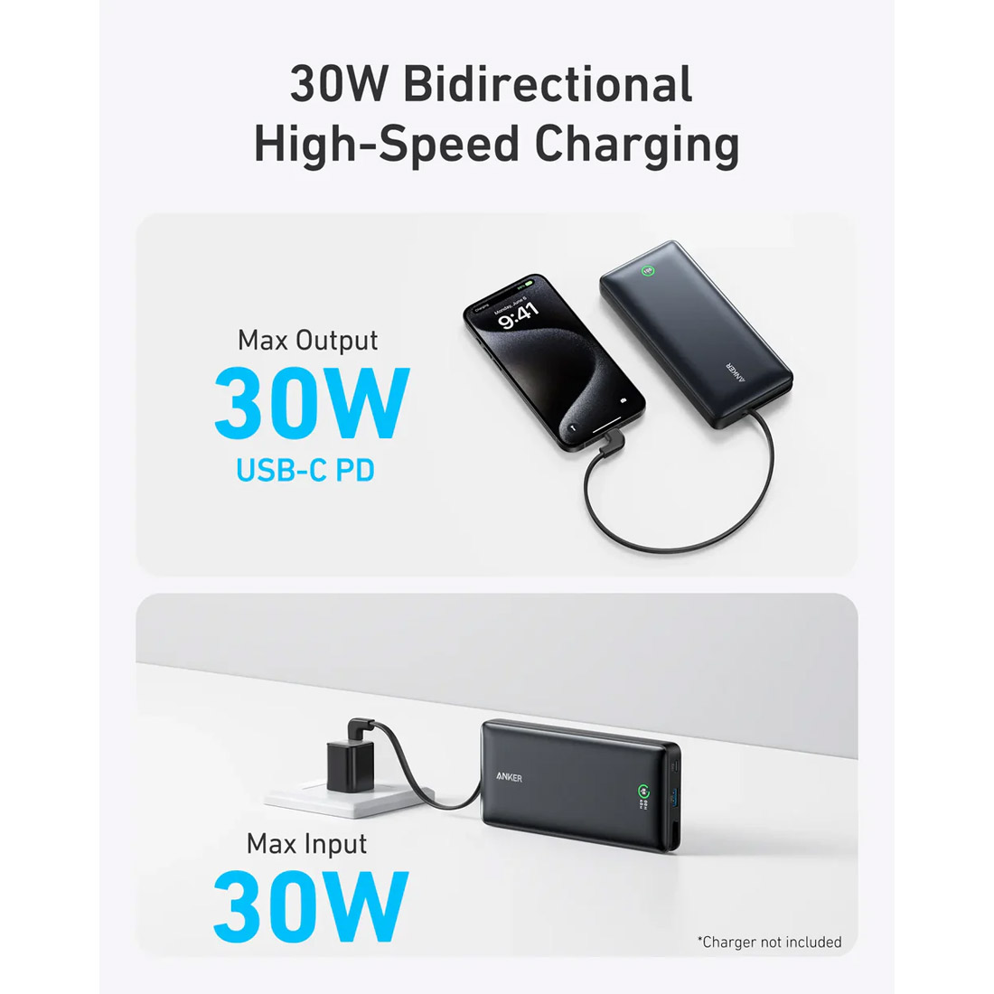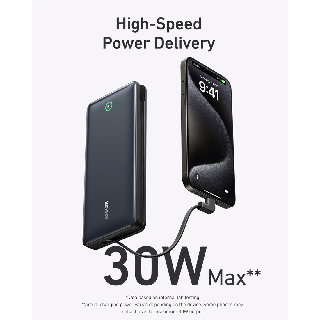 - Anker Nano Power Bank 20000mAh Built-in USB-C Cable A1387H11 - Black