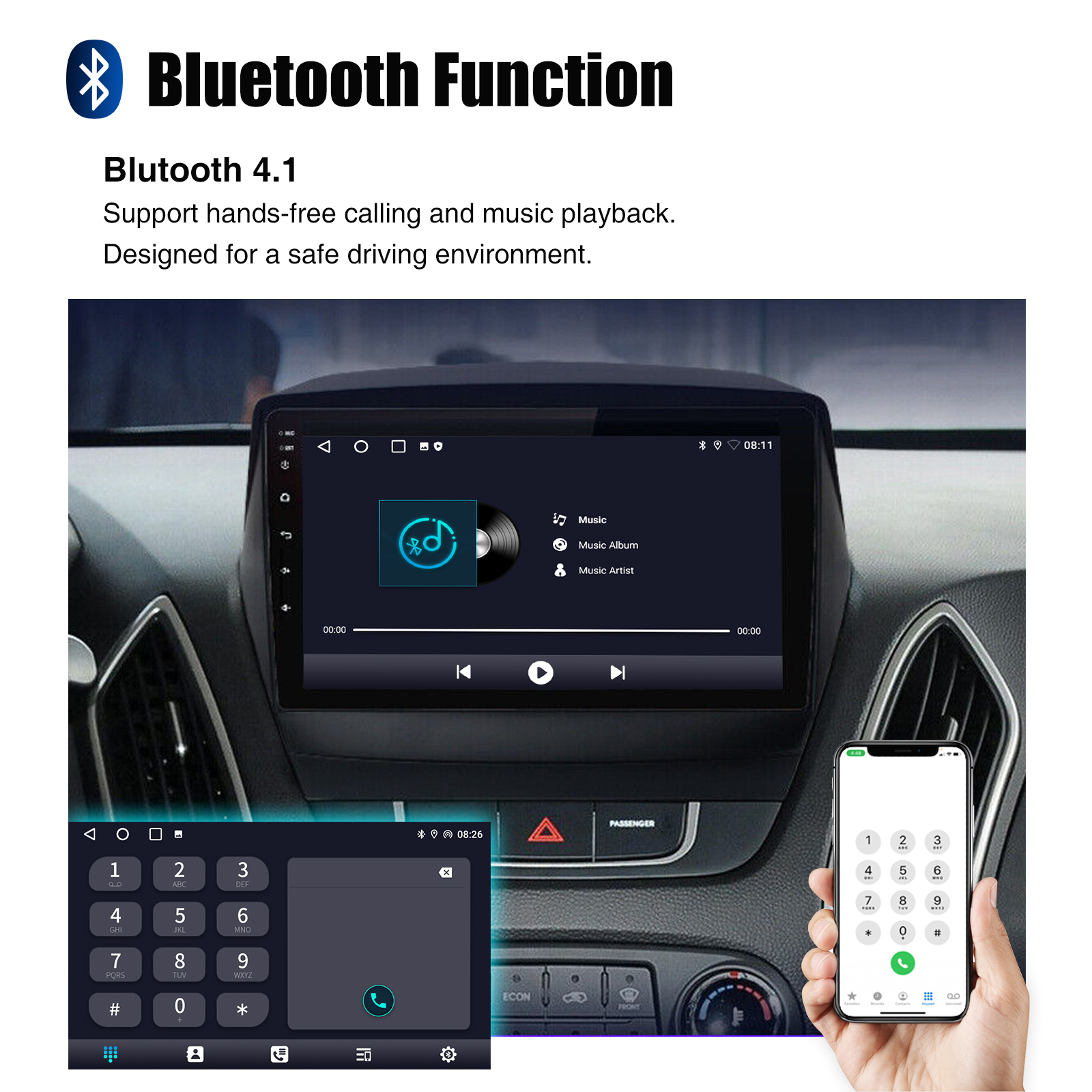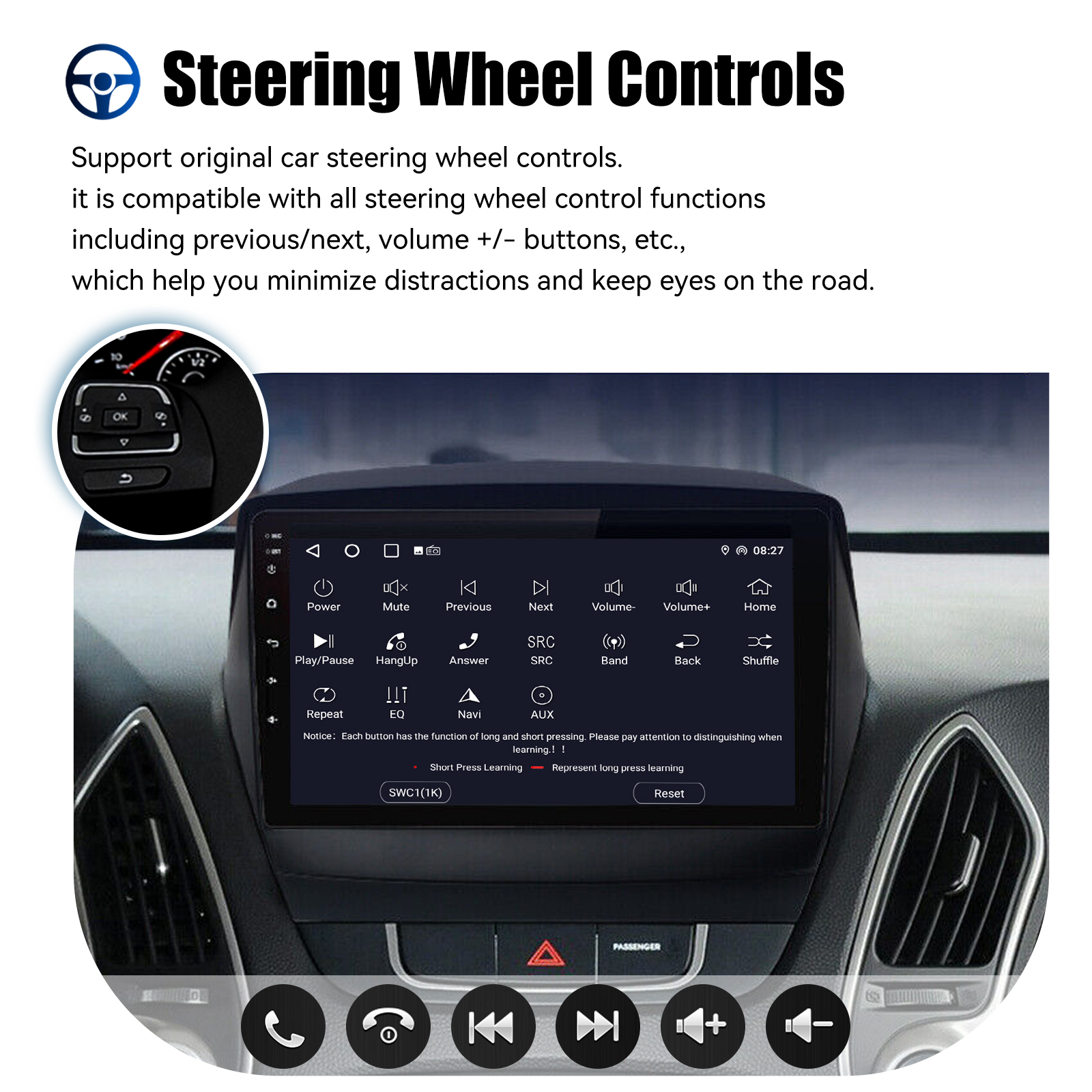 9 Inch Android 14 Car Radio For Hyundai Tucson IX35 2010-2015: The Android car radio with 9" 1280*720 HD capacitive touch screen, 1GB RAM and 32GB ROM allows you to download your favorite apps and videos, so that driving will never be boring .No additional frame, no cable change, plug and play.