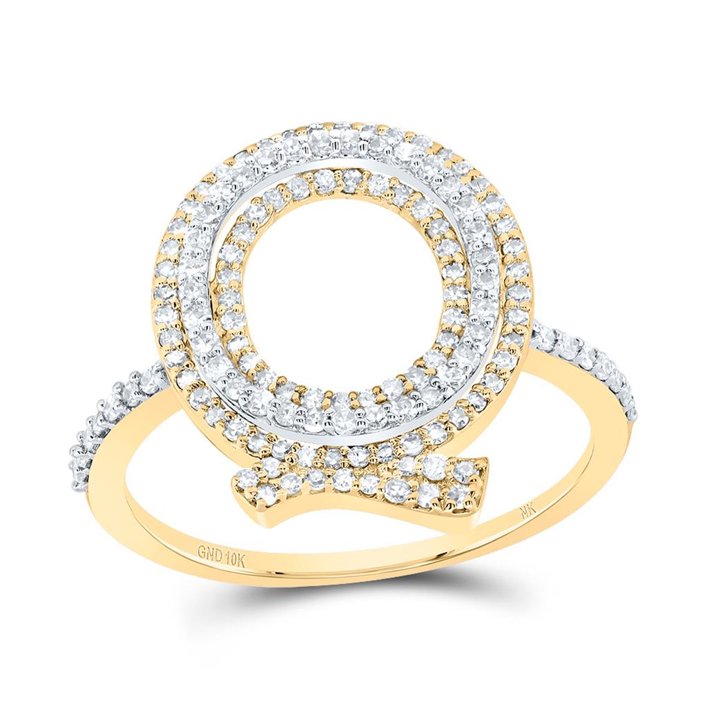 (2.39 gr. of 10k Yellow Gold | Total Carat Weight: 0.50 ct. t.w. of White Diamonds | Width: 15mm | Clarity: I1 - I2 | Color: H - I | Women's Round Cut Diamond Tiered Modern Block Font Initial Q Stackable Band Ring)
