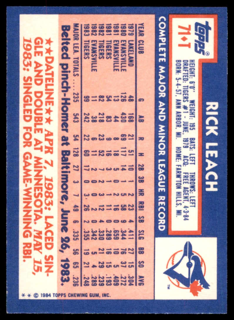 | 1984 Topps Traded 71T Rick Leach |