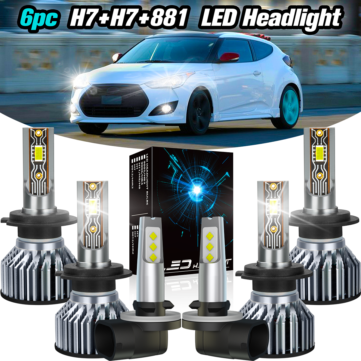H7 High Beam + H7 Low Beam + 881 Fog Light Replace Halogen Bulb