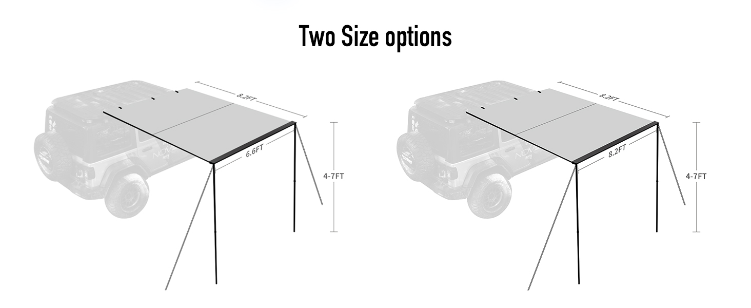 1.Novsight car side awning is a versatile and durable sunshade that fits any vehicle with a roof rack and is made of high-quality materials to handle brutal weather. The fabric blocks UV rays and is the perfect buddy for outdoor trips. It will boost your fun by giving your family a comfy, shaded spot to sit.1.Novsight car side awning is a versatile and durable sunshade that fits any vehicle with a roof rack and is made of high-quality materials to handle brutal weather. The fabric blocks UV rays and is the perfect buddy for outdoor trips. It will boost your fun by giving your family a comfy, shaded spot to sit.Our vehicle Awning is suitable for SUVs, cars, trucks, SUVs, vans, land camping trailers or almost any vehicle with roof brackets.