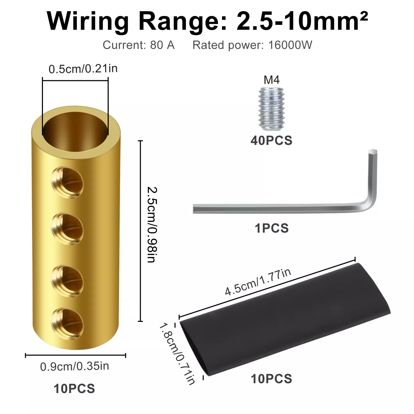 Package Included: Each package includes 10PCS 6 AWG terminals, 40pcs installation screws, 10pcs heat shrink tubes, and 1pc wrench, ensuring you have everything you need for your wiring tasks in one convenient set.
