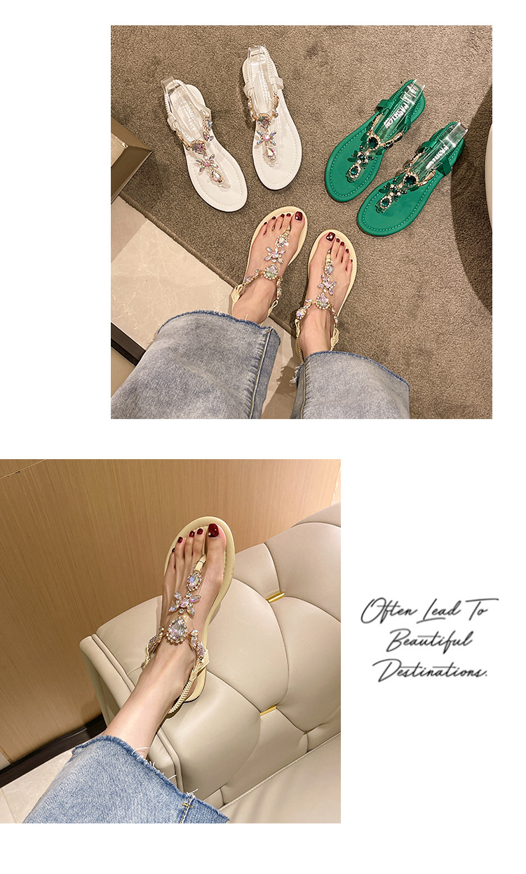 Sandals Women's Summer, Rhinestone Flat Slippers Beach Shoes Flip-flops