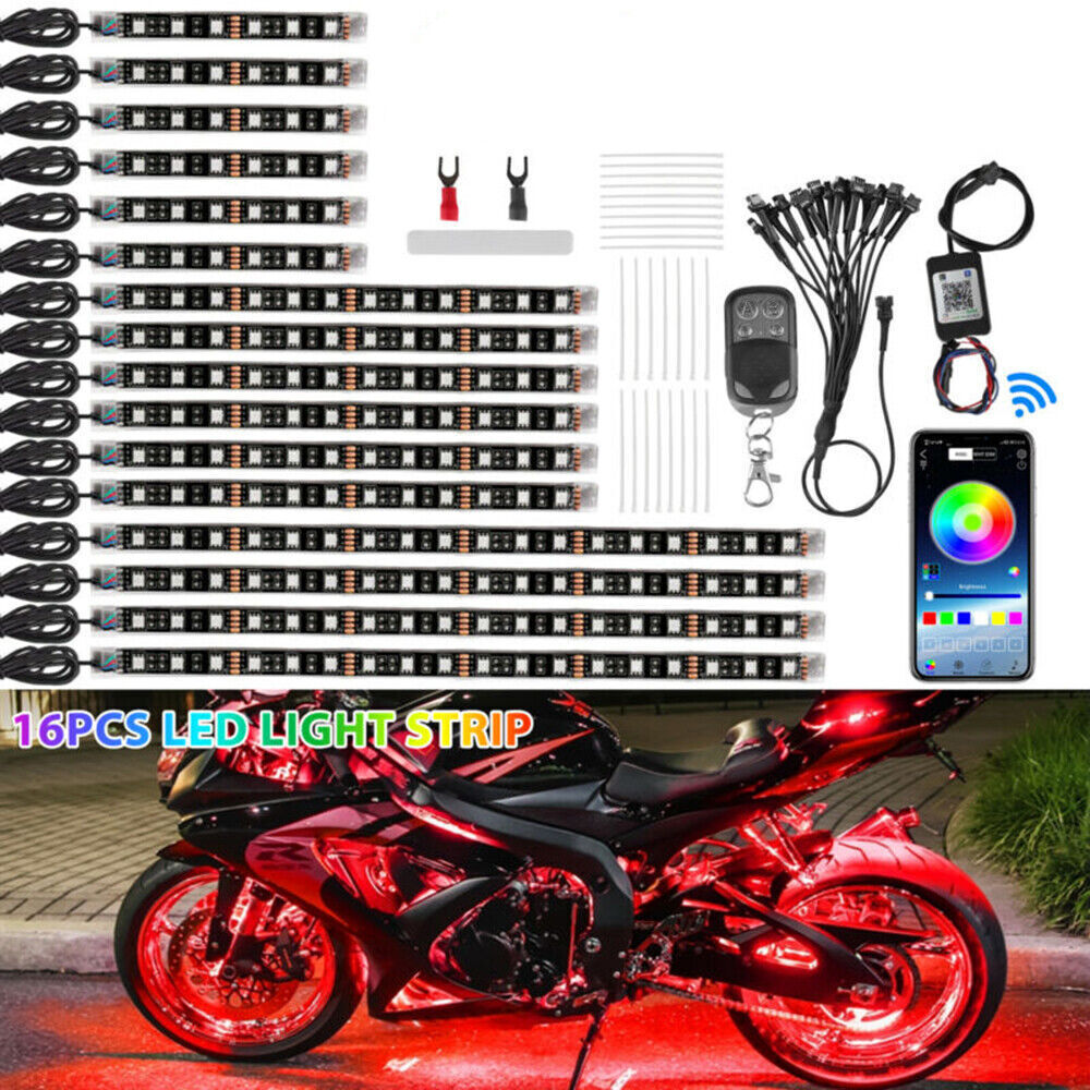 16PCS RGB Motorcycle LED Light Accent Glow Neon Strip Kit
