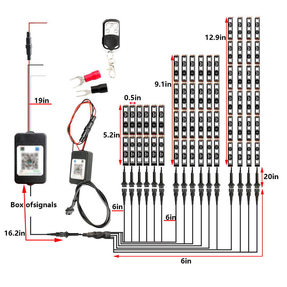 【Colorful Mode】Motorcycle strip lights kit feature 18 RGB colors, 16 kinds of static color, 2 color cycle modes, 3 flashing modes, and 1 fading mode with adjustable brightness. You can use the remote control to switch various modes.