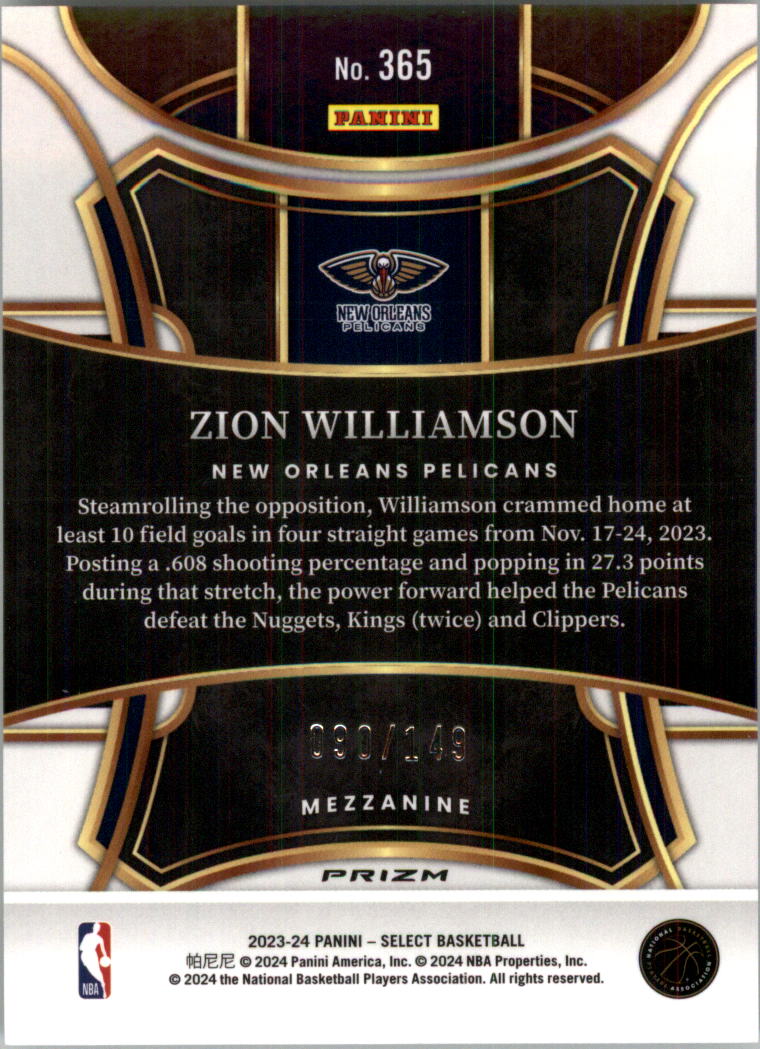 2023-24 Select Prizms White #365 Zion Williamson /149 - FB