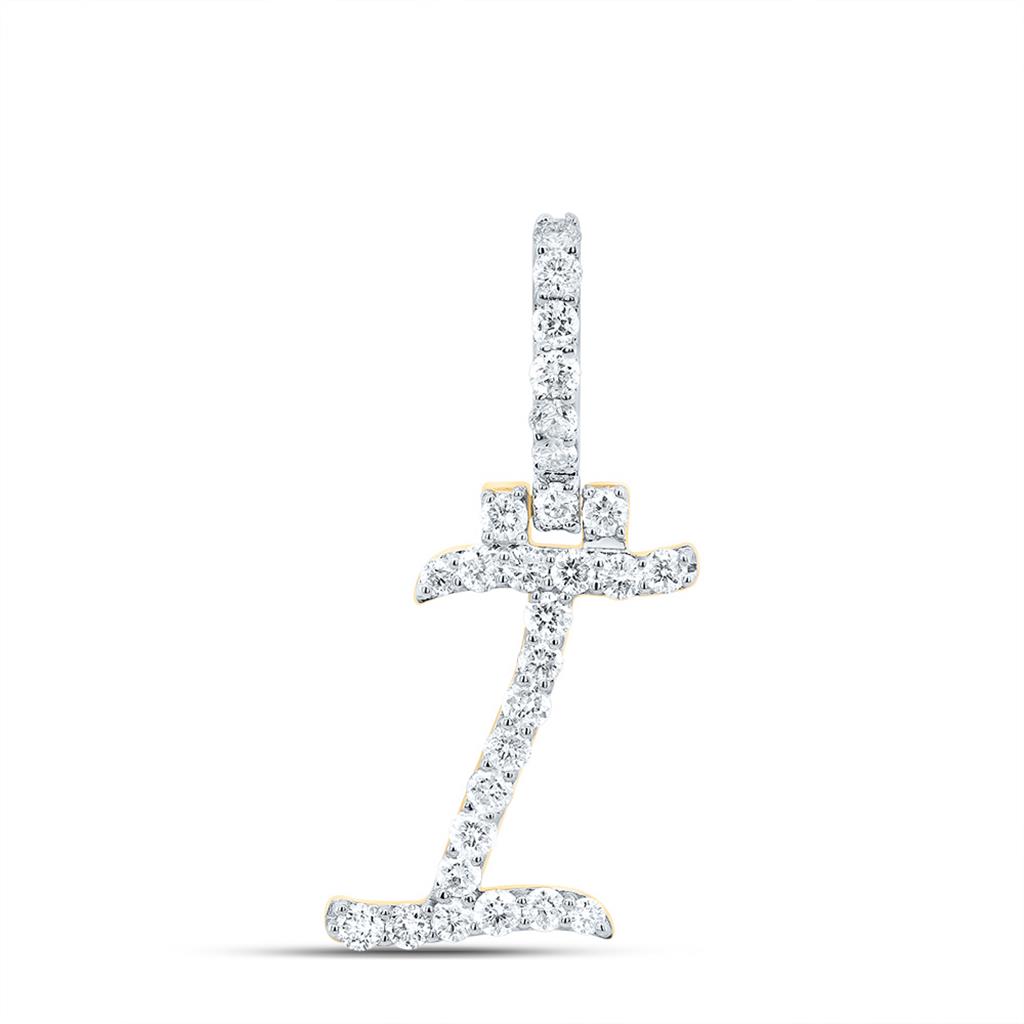 (1.29 gr. of 10k Yellow Gold | Total Carat Weight: 0.50 ct. t.w. of White Diamonds | Length: 27mm | Width: | Clarity: I1 - I2 | Color: H - I | Women's Earth Mined Natural Diamond Block Font Slanted Initial I Statement Pendant)