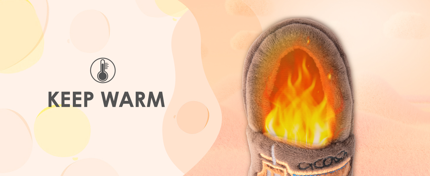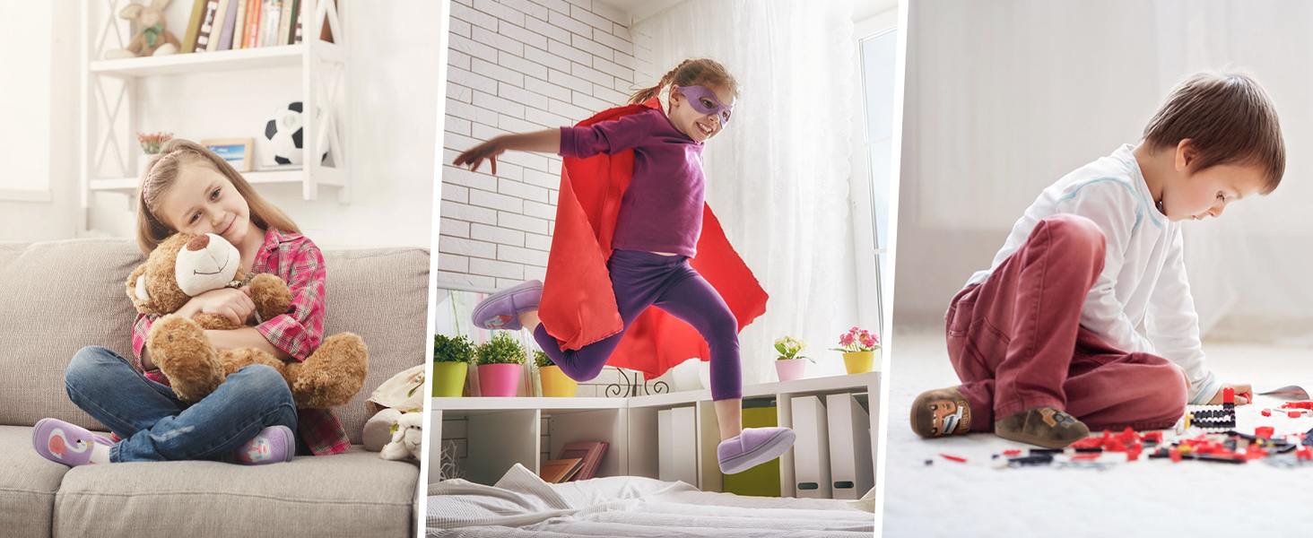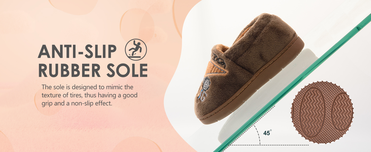 [Durable & Non-Slip Sole] - The kids/toddler warm anti-skid slippers feature reinforced PVC/rubber sole for maximum comfort and grip, adapting to any indoor outdoor surface. Lightweight non-slip thick sole effectively prevent little feet from suffering discomfort on a chilly floor.