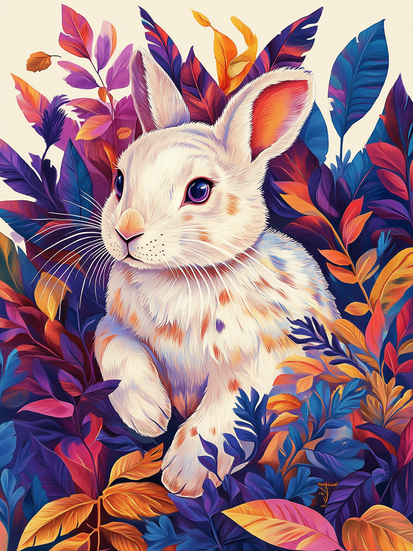 ENCHANTING & COLORFUL DESIGN This bunny wall art brings an imaginative touch to any space, featuring a mesmerizing rabbit surrounded by lush, vibrant foliage. Its delicate details and rich color palette create a dreamlike aesthetic, making it a perfect statement piece for a nursery, children’s room, or cozy living space. The harmonious mix of warm and cool hues makes this artwork an eye-catching centerpiece for rabbit lovers and nature enthusiasts alike.