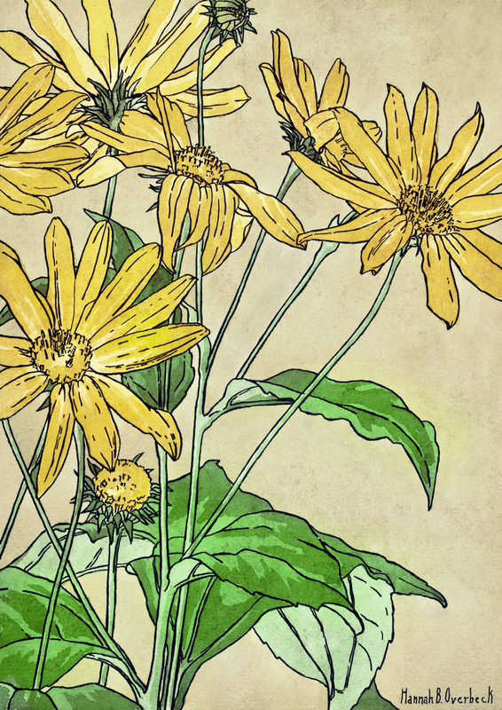VINTAGE BOTANICAL COMPOSITION This poster showcases an illustration of yellow wildflowers by artist Hannah B. Overbeck, rendered with botanical accuracy and graceful linework. The design emphasizes form and flow, making it ideal for nature enthusiasts, collectors of antique-style florals, or decorators seeking soft, garden-inspired art.