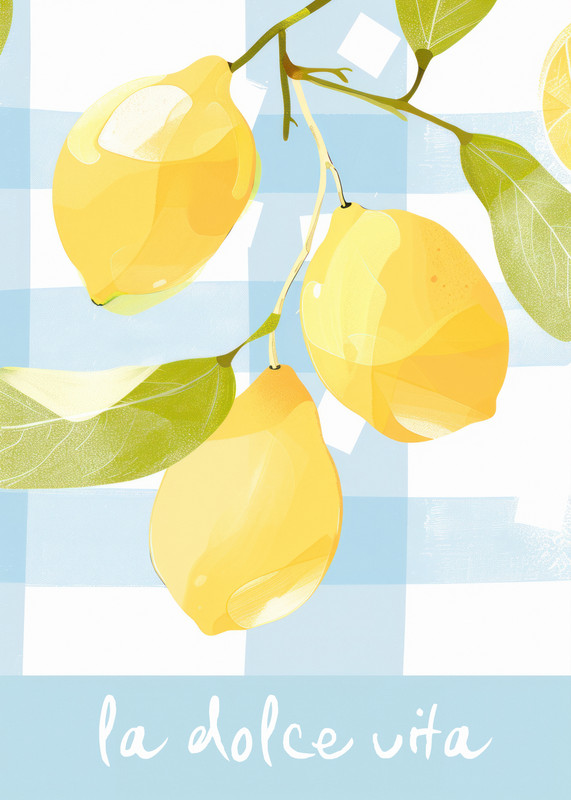 Italian-Inspired Design Infused with Mediterranean charm, this poster captures a trio of radiant yellow lemons set against a fresh blue-and-white gingham backdrop. Below, the handwritten phrase “la dolce vita” adds a whimsical nod to Italian living. It’s a cheerful and refreshing print for kitchens, dining areas, or breakfast nooks craving warmth and brightness.