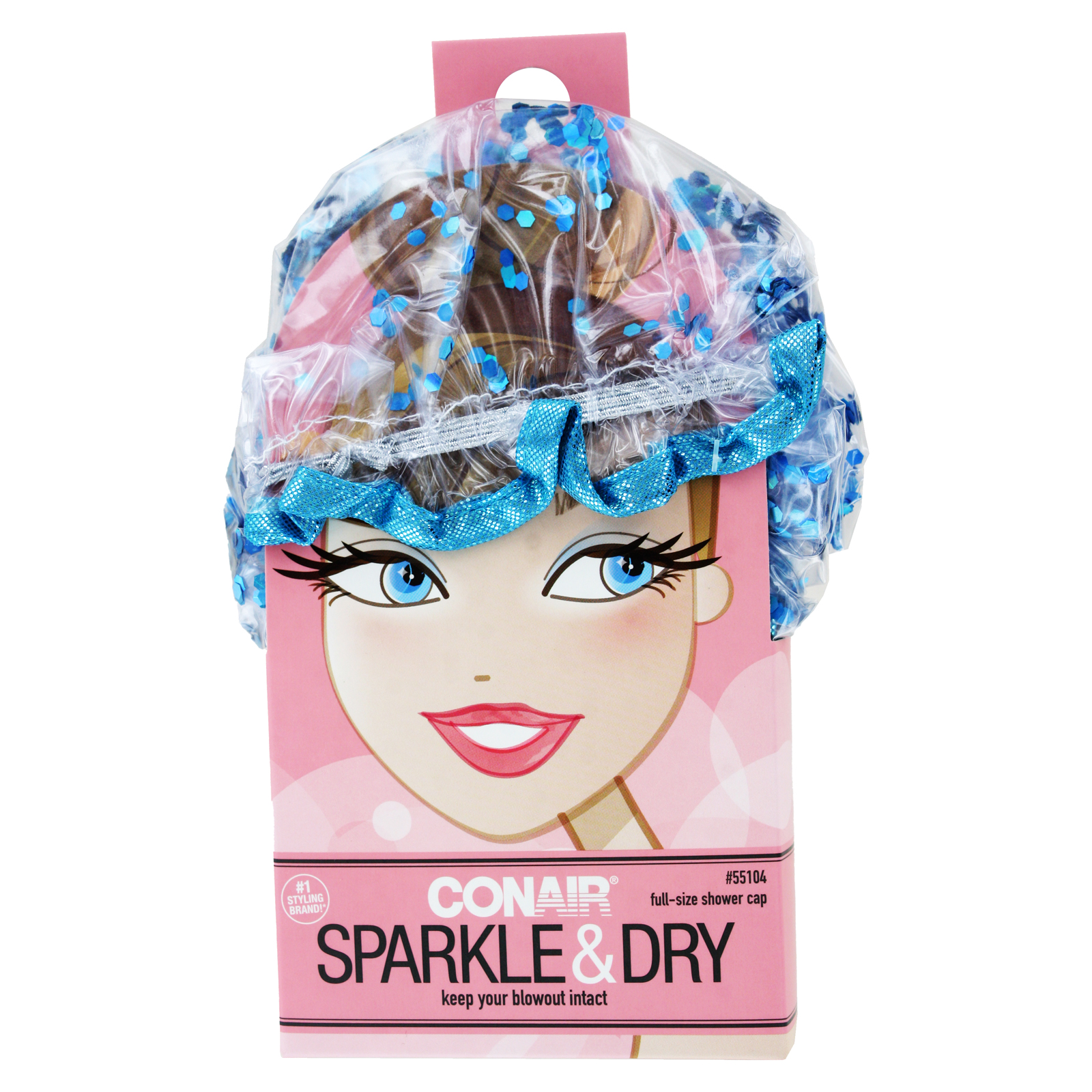 Conair Sparkle & Dry Full-Size Double Lined Shower Cap with Glitter, 1-Piece