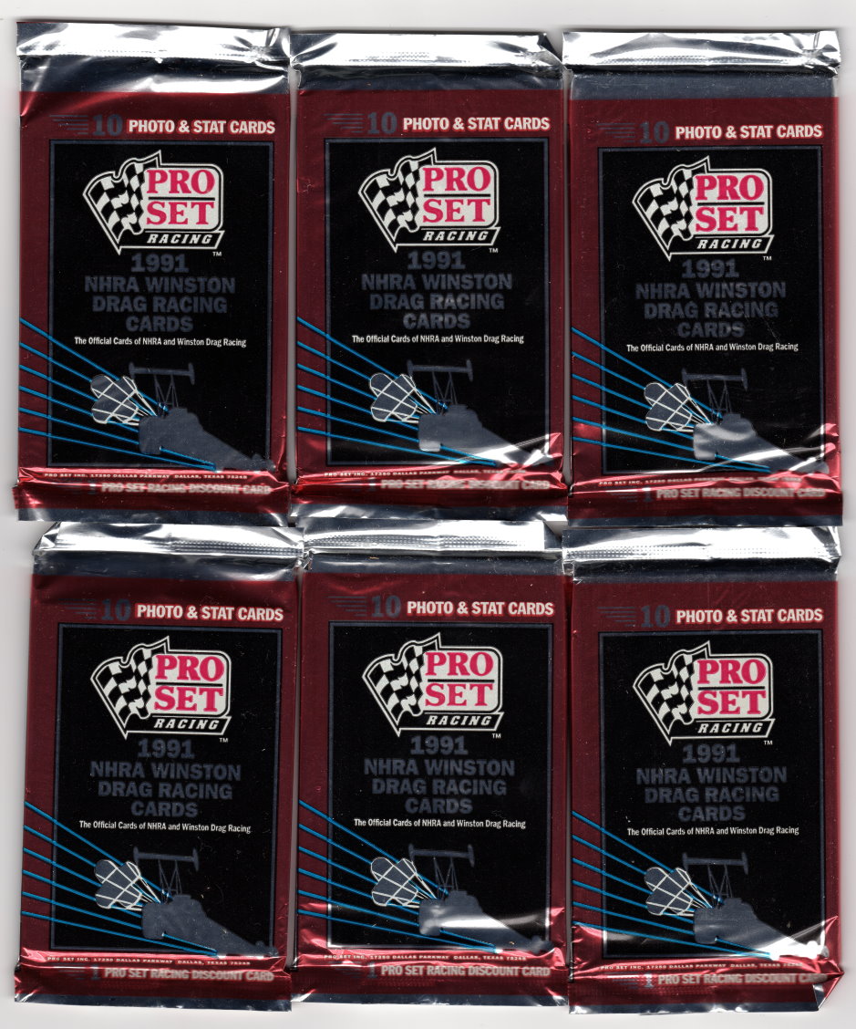 Pro Set Racing 1991 NHRA Winston Drag Racing Cards (6) Packs of 10 Cards Each.