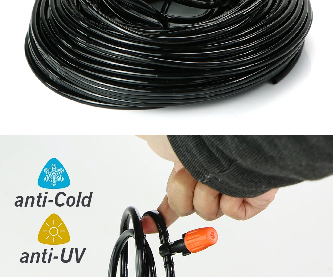 - Rugged and flexible tubing, easy to unroll and stake in garden, flower bed, ground cover or other landscaped areas.