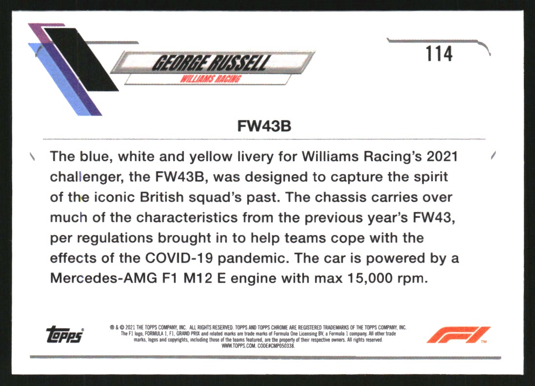 2021 Topps Chrome Sapphire Formula 1 #114 George Russell F1 Cars - Racing