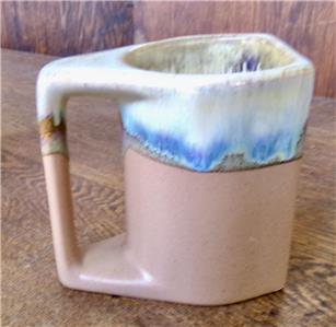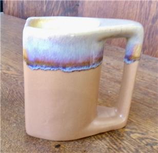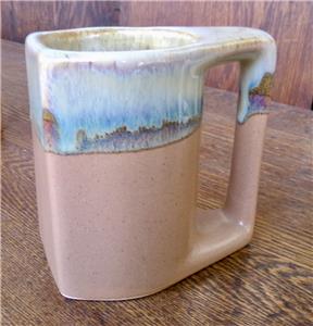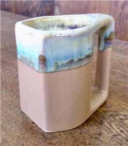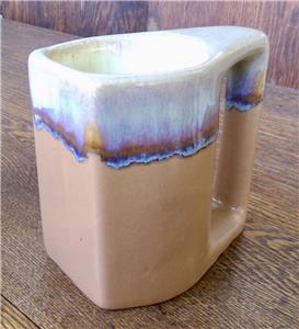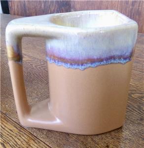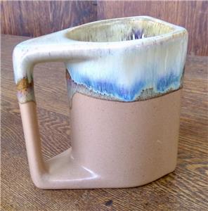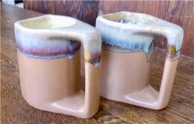 This auction is for a pair of Rodolfo Padilla stoneware drip glaze mugs made in Mexico. Glazed in a sandy brown base with a blue beige drip glaze, these mugs are 4.5" tall.