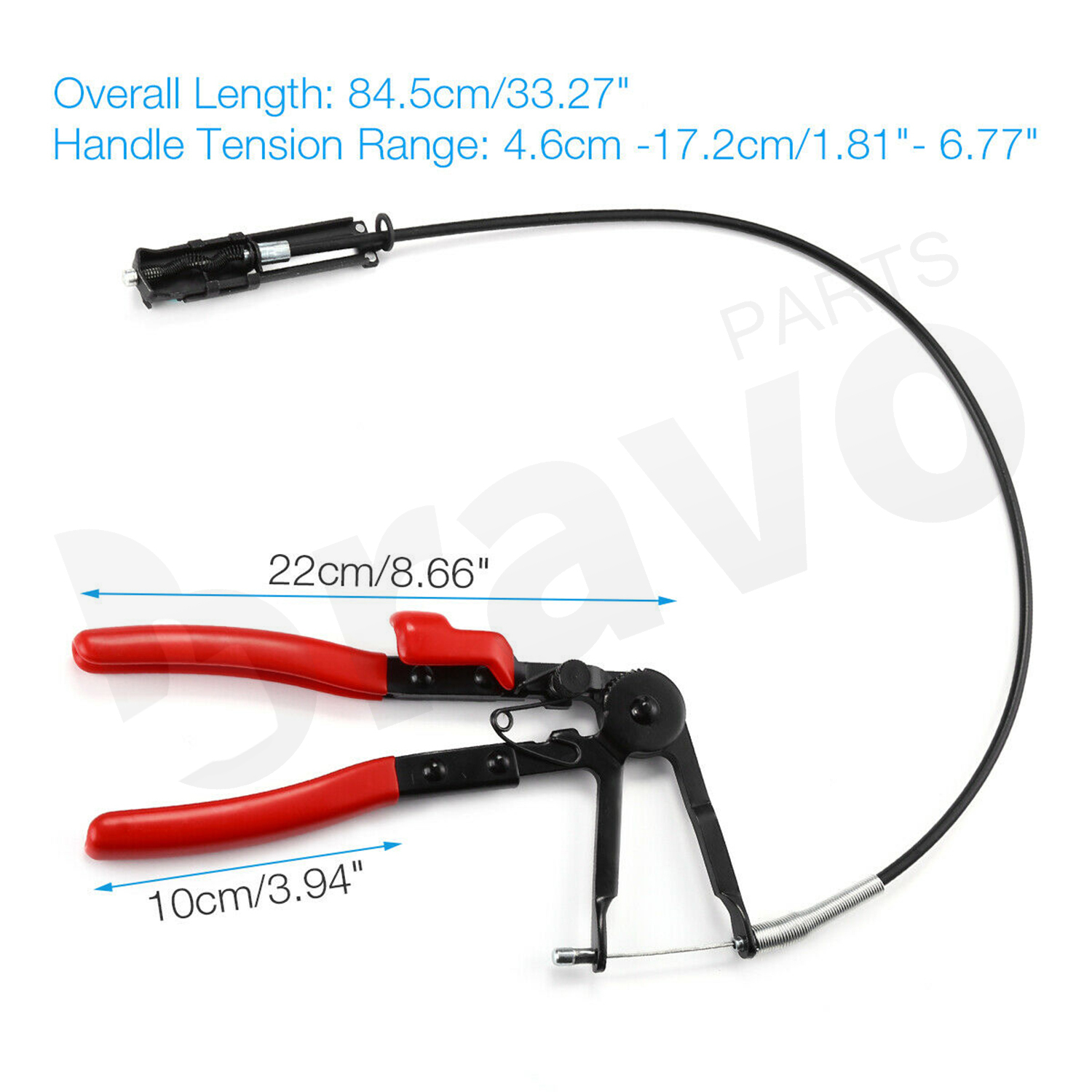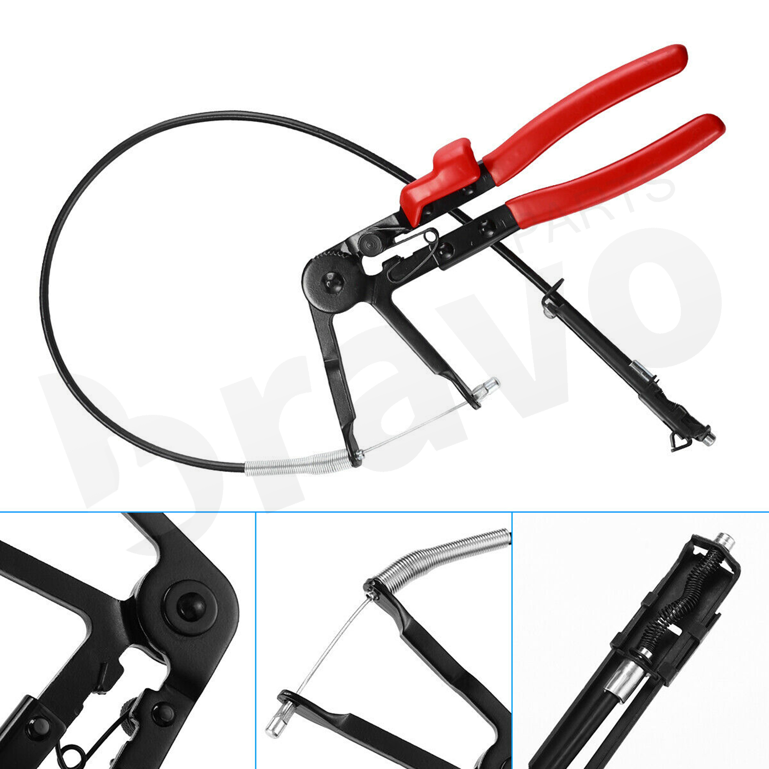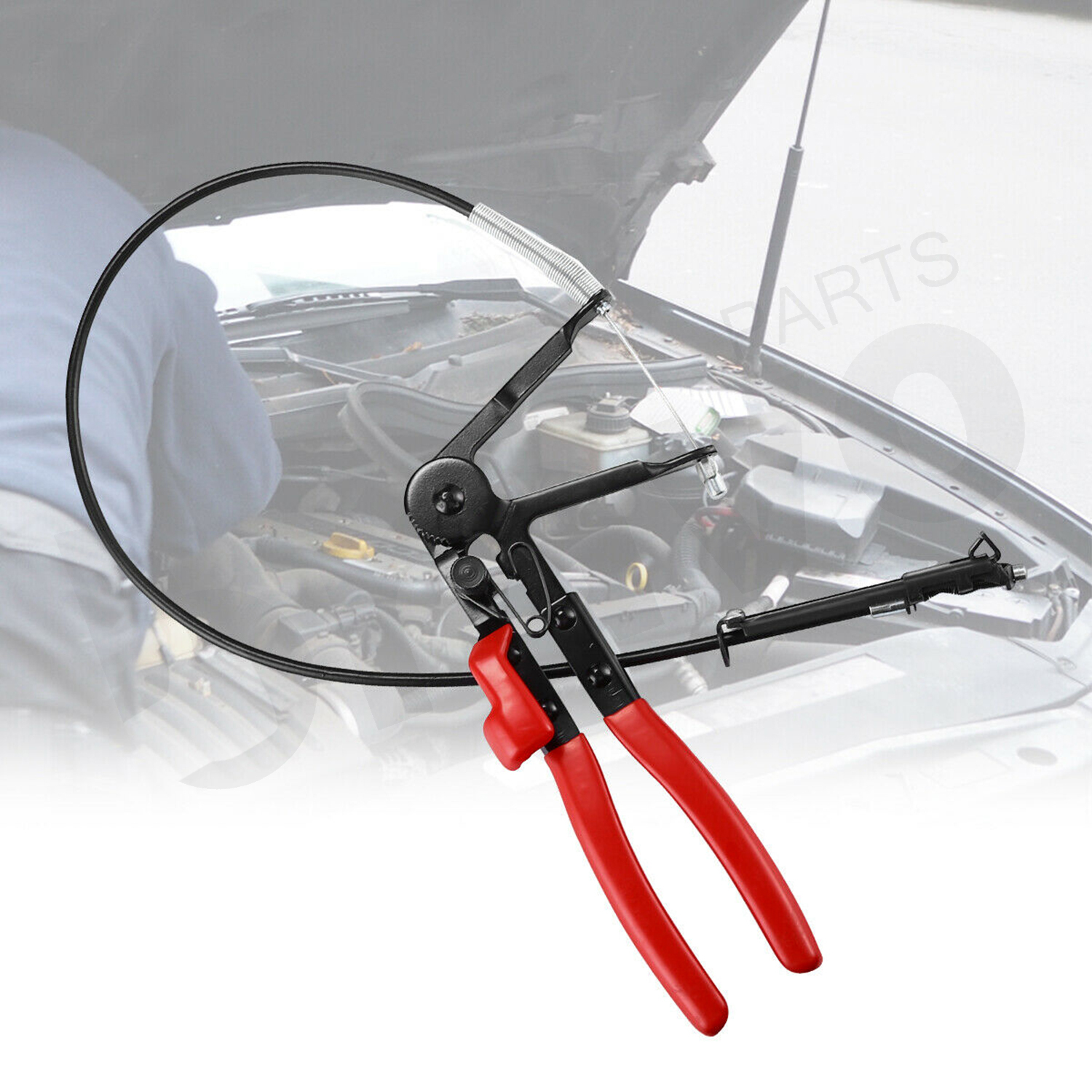 The Long Reach Hose Clamp Plier with wire flexible wire shaft is convenient for working in hidden areas as well as long distance ones and allows for that often needed, extra reach. Great for the removal and locking of clamps into an open position. For replacement of fuel, oil, and water hoses. Suitable for metal, plastic and a self tightening tensioned hose clamps with diameters of 18mm-54mm.