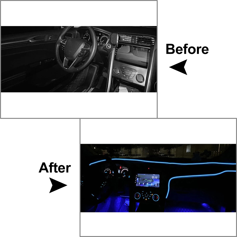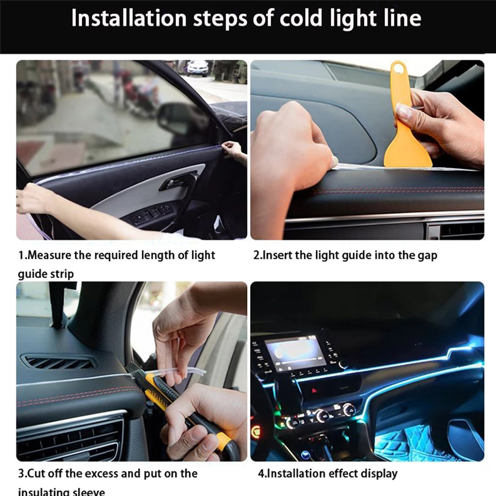 1. Easy to install: Embedded design for easy installation, do not need to stick adhesive, just plug the lamp strip directly to the door or instrument desk crevice, the panel seams. Simple and convenient, free to bend, can be made into any graphics. Professional design installation is firm and not easy to fall of.