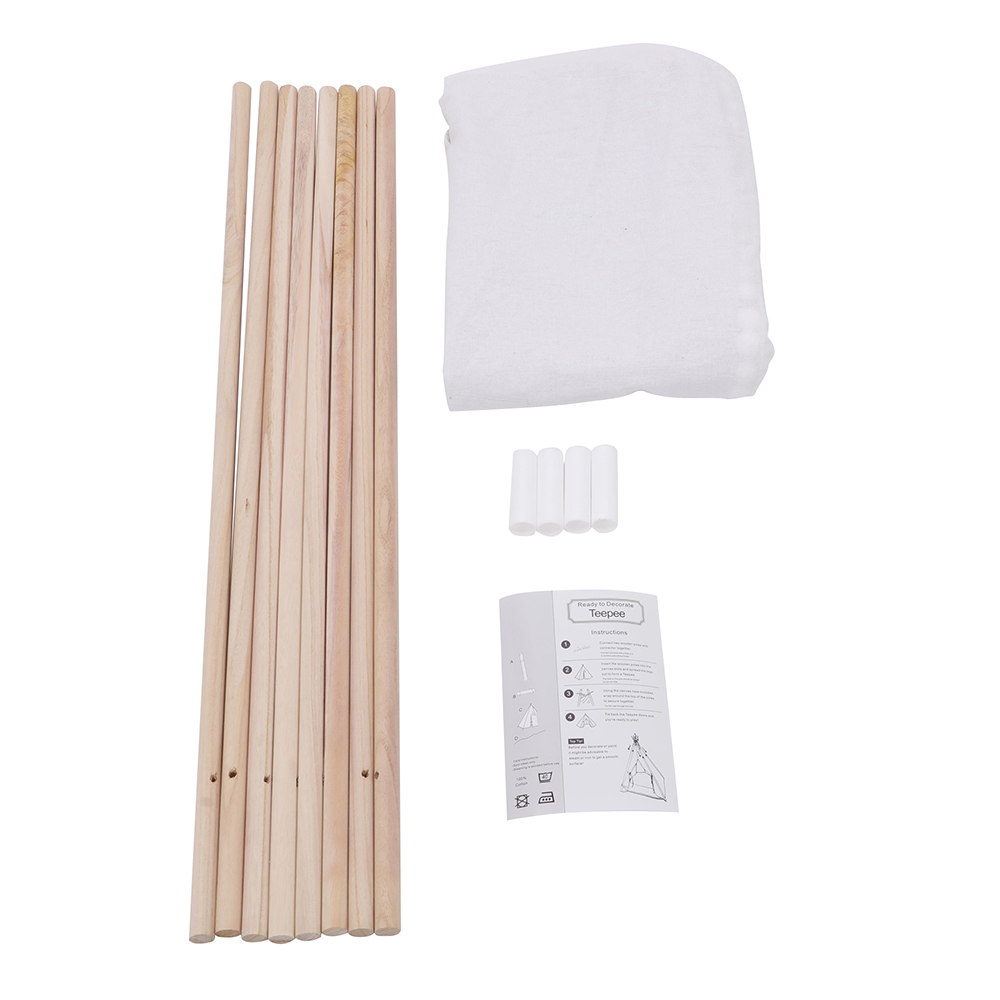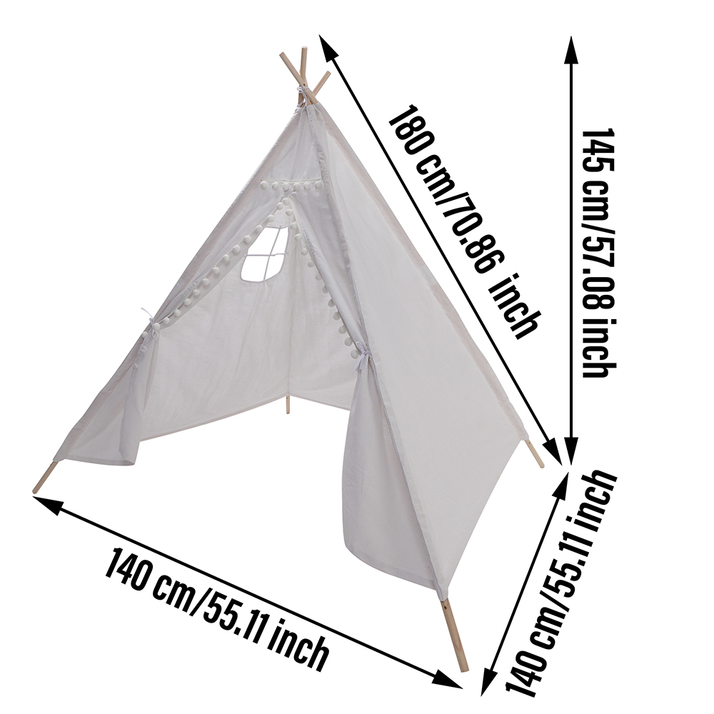 【Material and Size】: These Girls teepee tents are made of 100% natural, non-toxic, unpainted cotton canvas. The tent poles are made of sturdy pine wood and are free of chemical odors and harmful substances. Size(L x W x H): 55 x 55 x 57.8 inches.