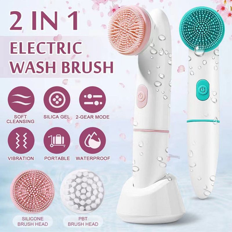 Electric Facial Cleansing Brush Skin Care Massager Blackhead Remover With 2 Hea