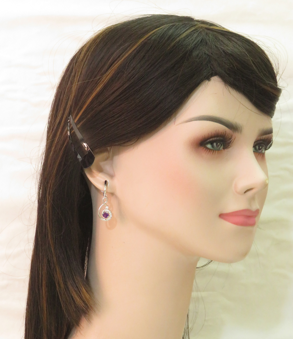 AAA Quality 925 Sterling Silver AMETHYST Earrings 1.4" Asian Fashion Jewelry