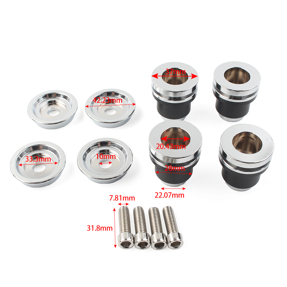 Quick Release Sissy Bar Passenger Mounting Spools Kit For Indian Scout 2015-2024 Specification: Condition: 100% Brand New Material: 6061 Aluminium alloy and rubber Color: Chrome and Black Package Included: One Set of 4 Mounting Spools (As the Pictures Show) Fiment: For Indian Scout 2015-2024 For Indian Scout ABS 2019-2020 For Indian Scout Sixty 2016-2024 For Indian Scout Sixty ABS 2019-2020 For Indian Scout 100th Anniversary 2020 Features: *Made from good quality alluminum alloy, lightweight, durable and precise. *Anti-rust, wear resistant and anti-corrosion, long service life. *Allows you add a Saddlebags or Passenger Backrest Sissy Bar quickly and easily *Convenient to use, no complicated procedures required, it’s a perfect replacement for the old or broken one. Note: *Due to the lighting and screen settings, the real color may slightly different from the picture. *Please double confirm your vehicle model is exactly same as us before purchase.