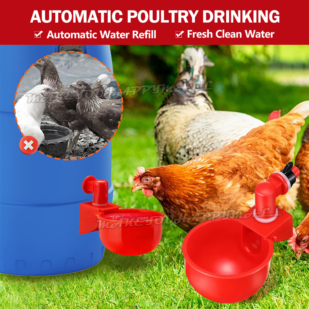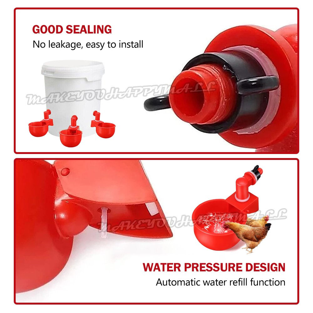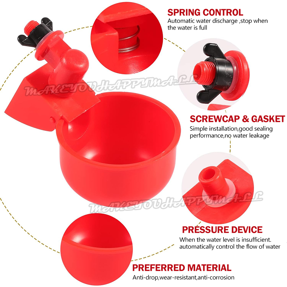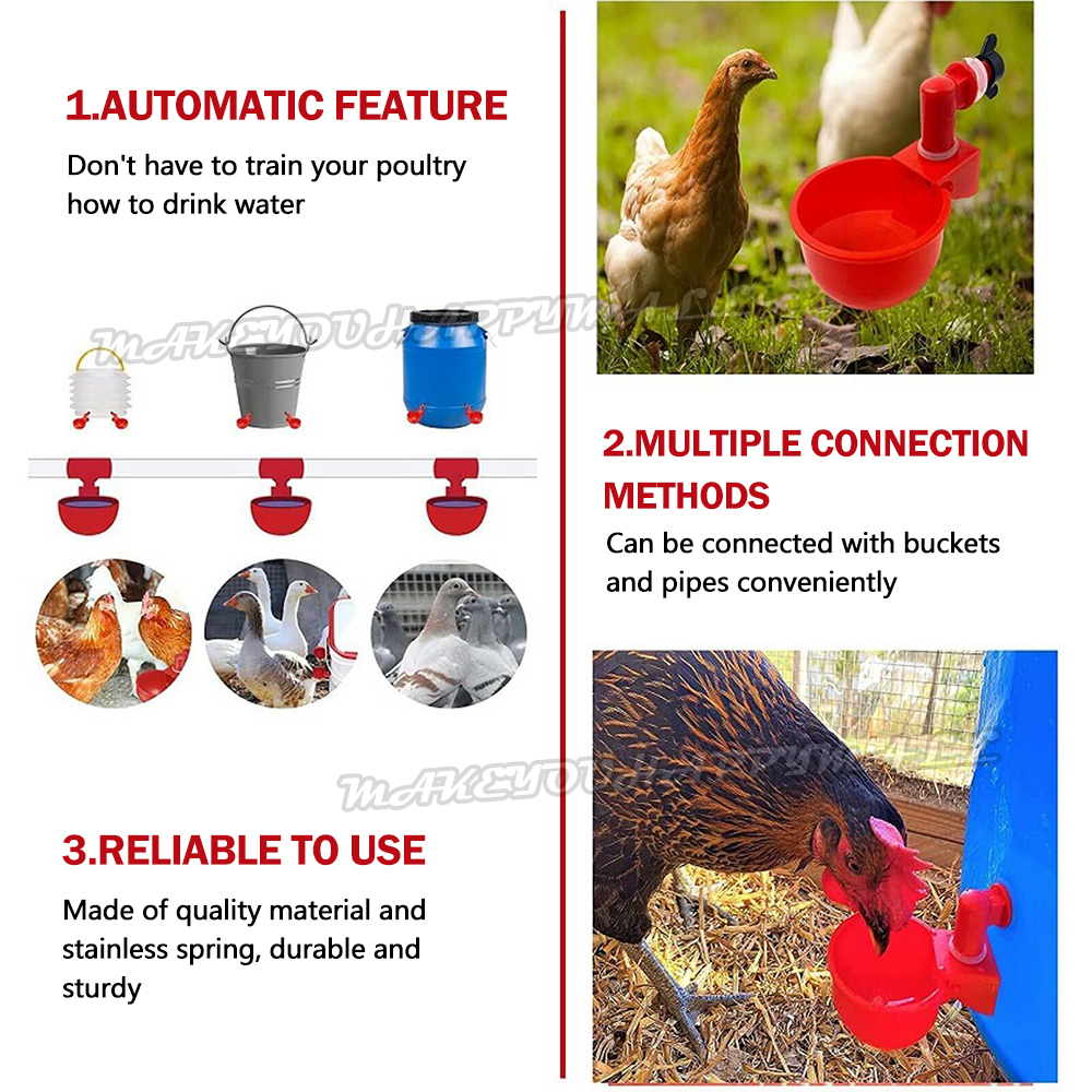- Our chicken drinking cups are easy for you to install, and the automatic design saves you time and energy, allowing you more time to do other things. You can also share them as gifts to your friends or family.